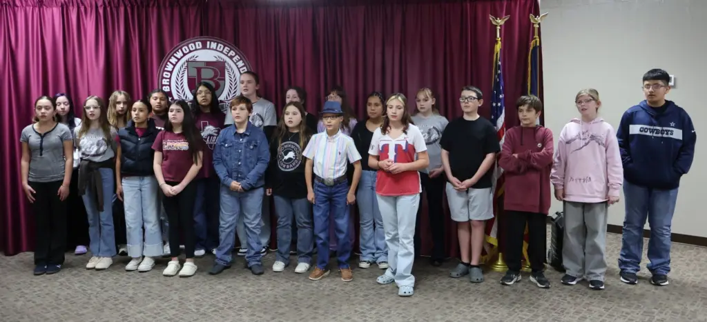 The Brownwood ISD (BISD) Board of Trustees met for a regular session meeting on Monday, March 16, 2026 at 6:30 p.m. Board President Michael Cloy called the session to order and gave the invocation. Coggin sixth-grade students Ellie Lacy, Rodrigo Buitron, Ahnali Rodriguez and Lorena Roberts led the Pledge of Allegiance.