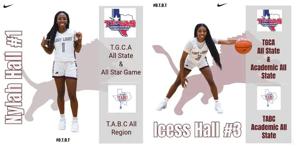 Brownwood Lady Lion basketball sisters Nylah Hall and Icess Hall both earned all-state status in Class 4A, as chosen by the Texas Girls Coaches Association.