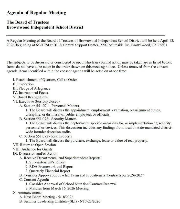 BISD Board of Trustees set to meet April 13 April 10, 2026 at 9:05 am Derrick Stuckly Local News Tweet Share Reddit +1 Pocket LinkedIn