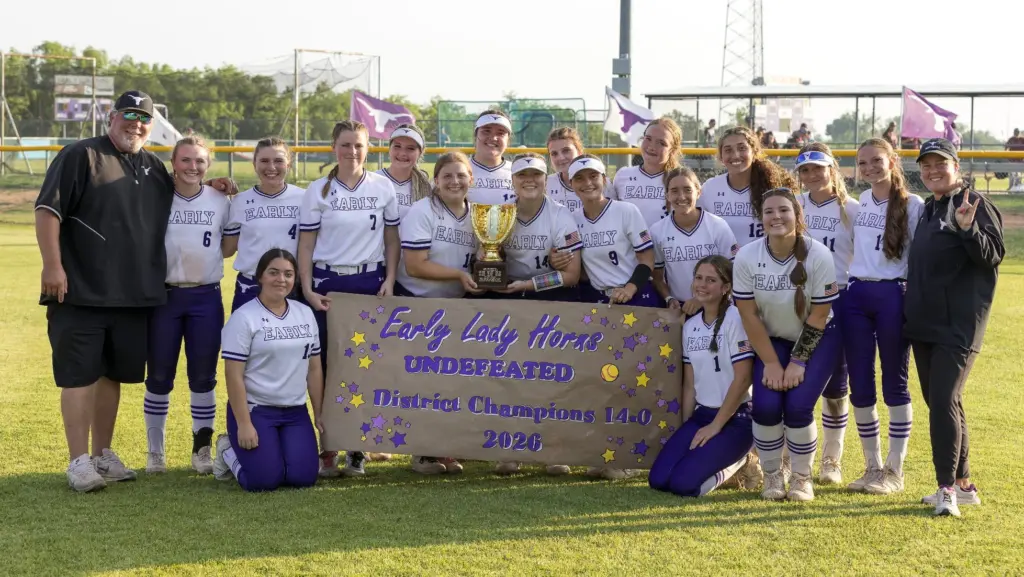 EARLY – The No. 12 Earl y Lady Horns completed an undefeated run to the District 8-3A softball championship, collecting their 17th victory in a row, 13-1 over Dublin Friday afternoon in the regular season finale.