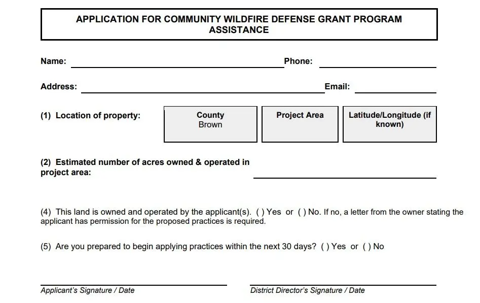 Pecan Bayou Soil and Water Conservation District (SWCD), in collaboration with Texas A&M Forest Service, Comanche Electric Cooperative Association, and Brown County, announces that the application window for the Community Wildfire Defense Grant (CWDG) Program has opened.