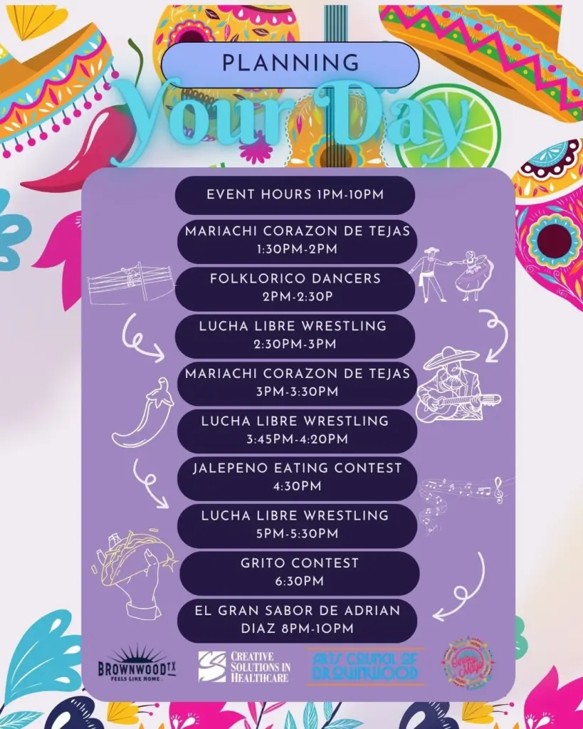 Events on the schedule this year include Marciachi Corazon de Texas, Folklorico Dancers, Lucha Libre Wrestling, a Jalapeno eating contest, a grito contest, and a performance by El Gran Sabor de Adrian Dias at end the evening The Cinco de Mayo Celebration of Brownwood is one of the community’s largest annual events, bringing thousands of people to Downtown Brownwood for a full day of live entertainment, local vendors, food, family activities, and celebration.