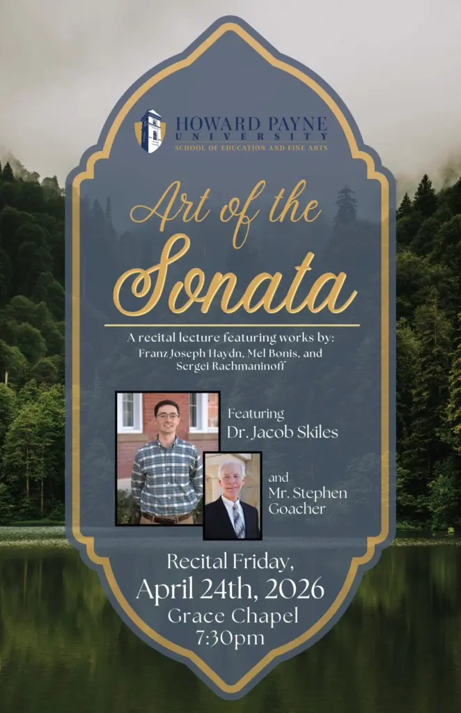 Howard Payne University’s (HPU) School of Education and Fine arts will present a recital on Friday, April 24, at 7:30 p.m. in Grace Chapel on HPU’s campus. The event is free and open to the public.