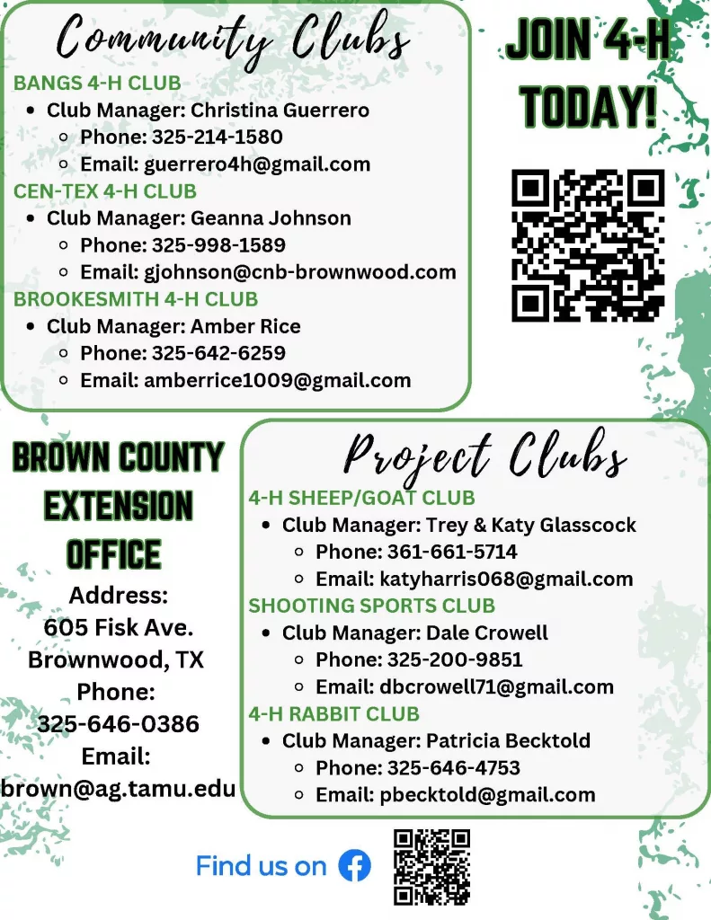 If you have any questions please contact the Brown County Extension Office. 325-646-0386