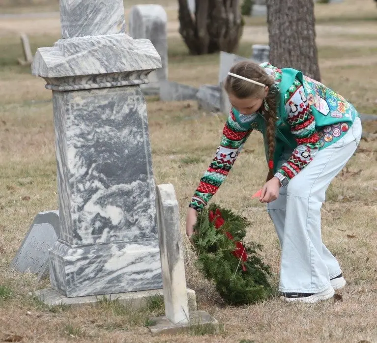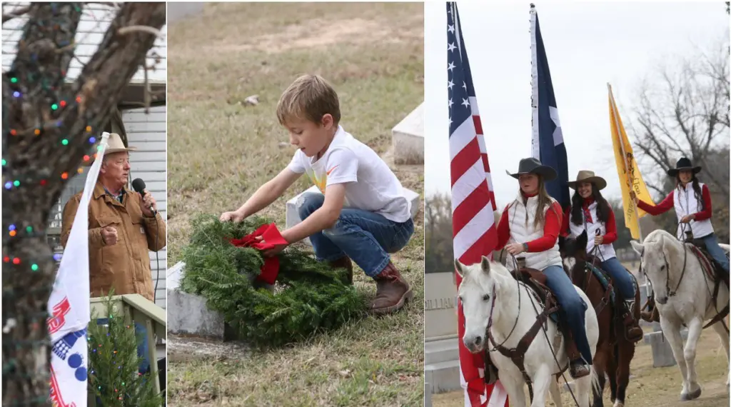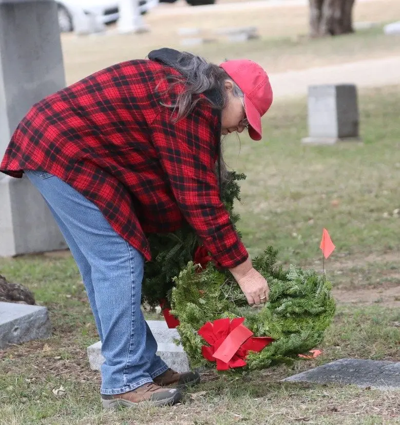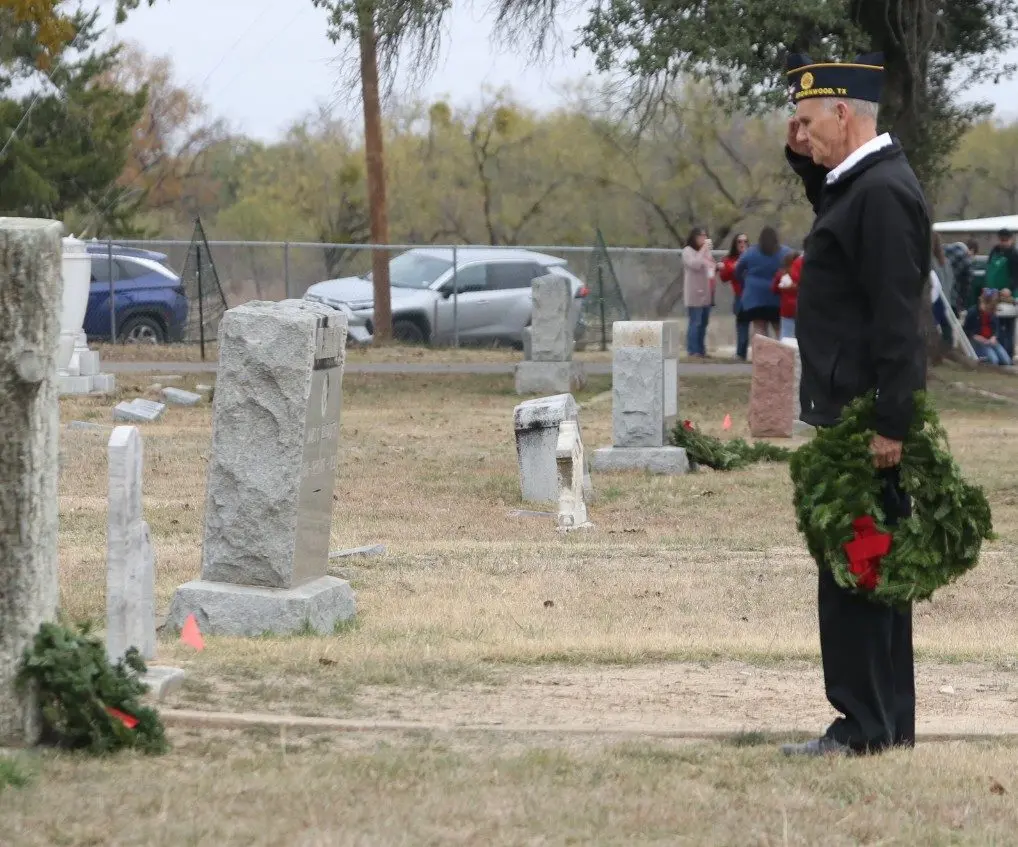 The Welcome W. Chandler Chapter of the Daughters of the Republic of Texas held a Wreaths Across America observation at Greenleaf Cemetery Saturday morning, followed the placement of 2,000 wreaths on the graves on military veterans.