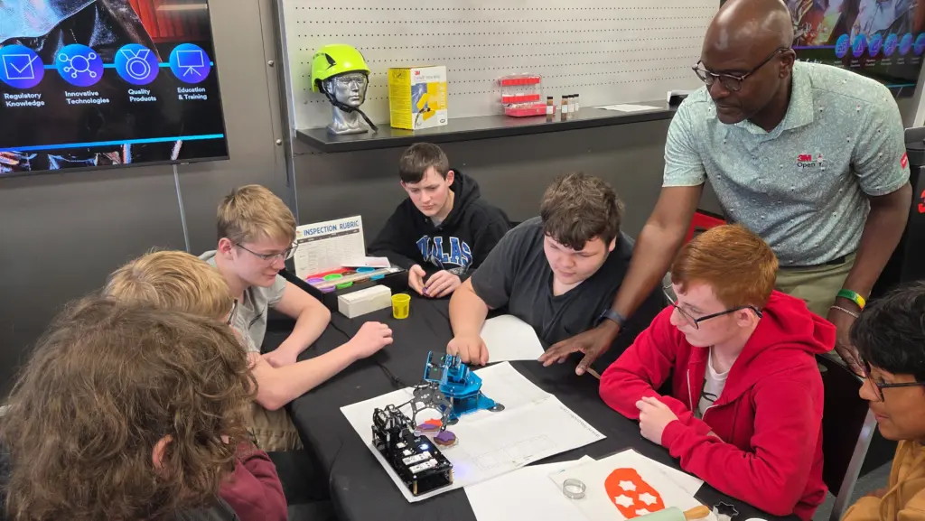 “The whole notion of why we’re doing this is to make sure students have a love, an appreciation, and an understanding for careers that they perhaps haven’t thought of, careers in advanced manufacturing, in STEM, and in trades,” Bowen said. “We wanted simply to create inspiration for the students. Students can’t imagine what they want to do or be until they have some experience with it, and that’s what 3M is hoping to do, to demystify thoughts and sentiments that manufacturing is dirty and grimy and only guys can do it. They can see the female volunteers here who work in the plant and love their jobs, and these jobs pay well. Whether you want to be a welder or an engineer, they’re all appropriate jobs and the industry needs them, even with automation, digitization and artificial intelligence. We’re still going to need a workforce to operate within the realm of technology to make the world a better place.”