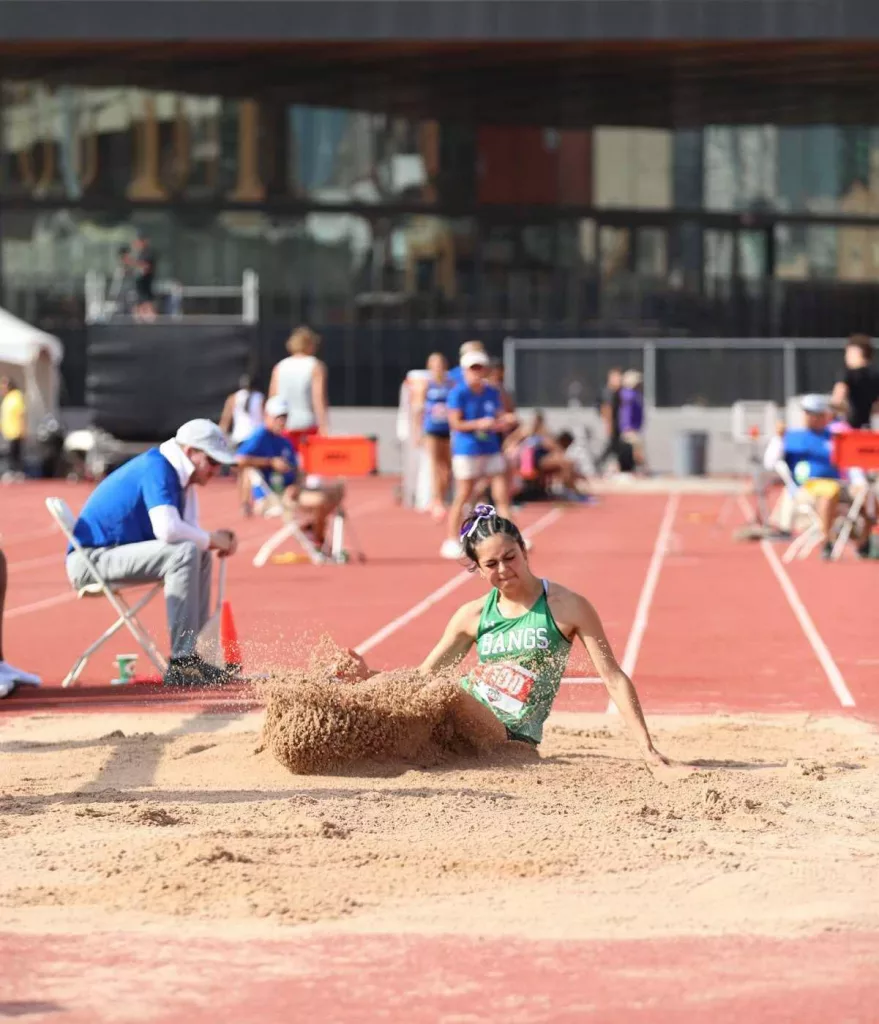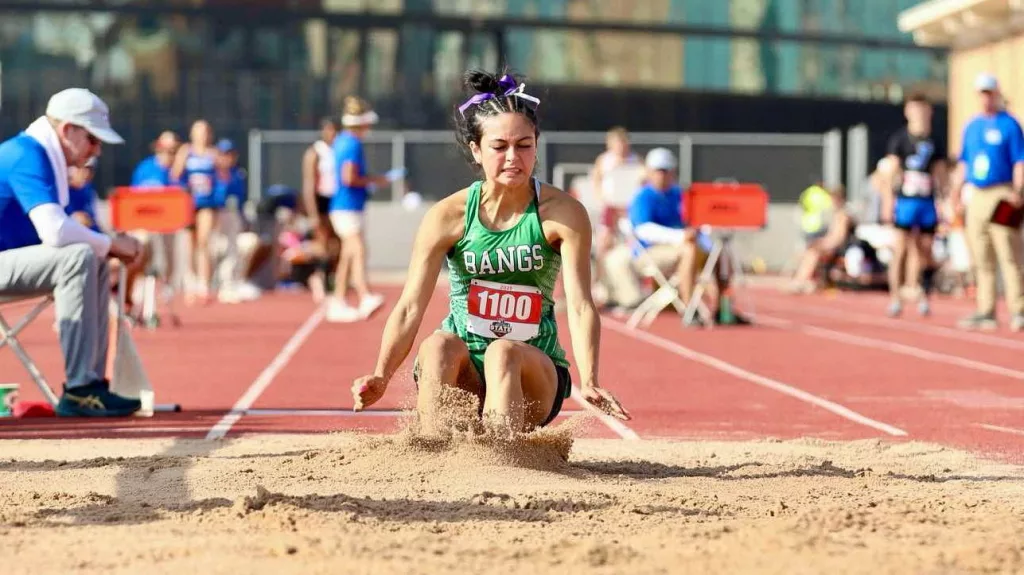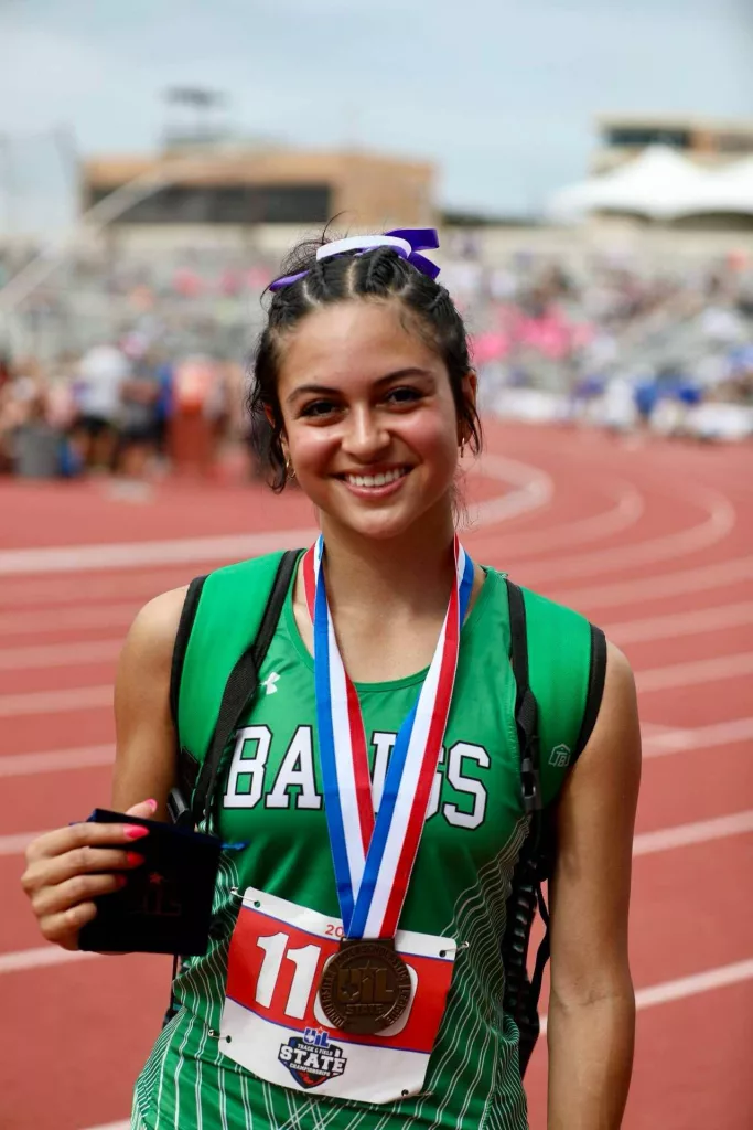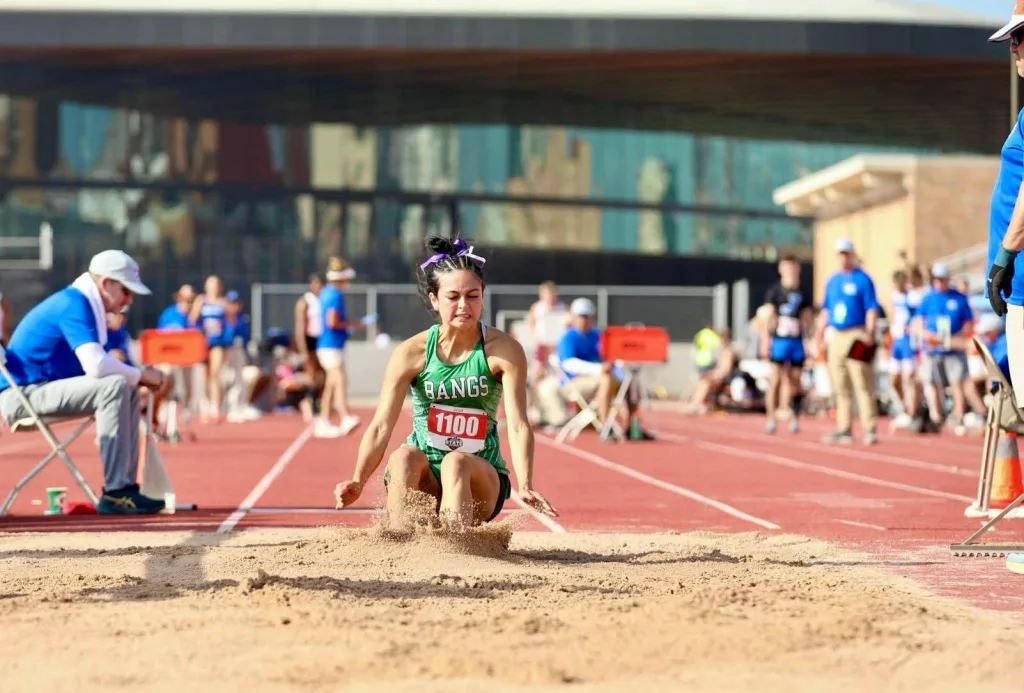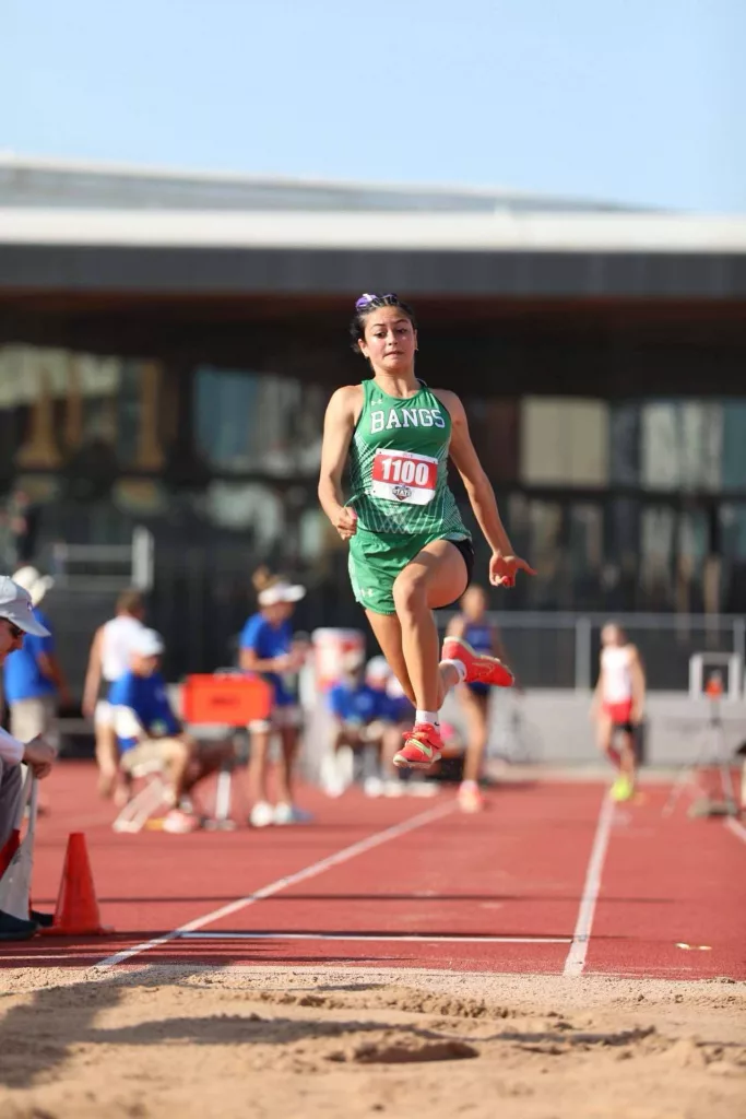 AUSTIN – Bangs Lady Dragon Kasey Solis wrote her name in the UIL Track and Field State Championships record book Friday as she earned a pair of medals in Class 2A girls field events at the University of Texas’ Myers Stadium.