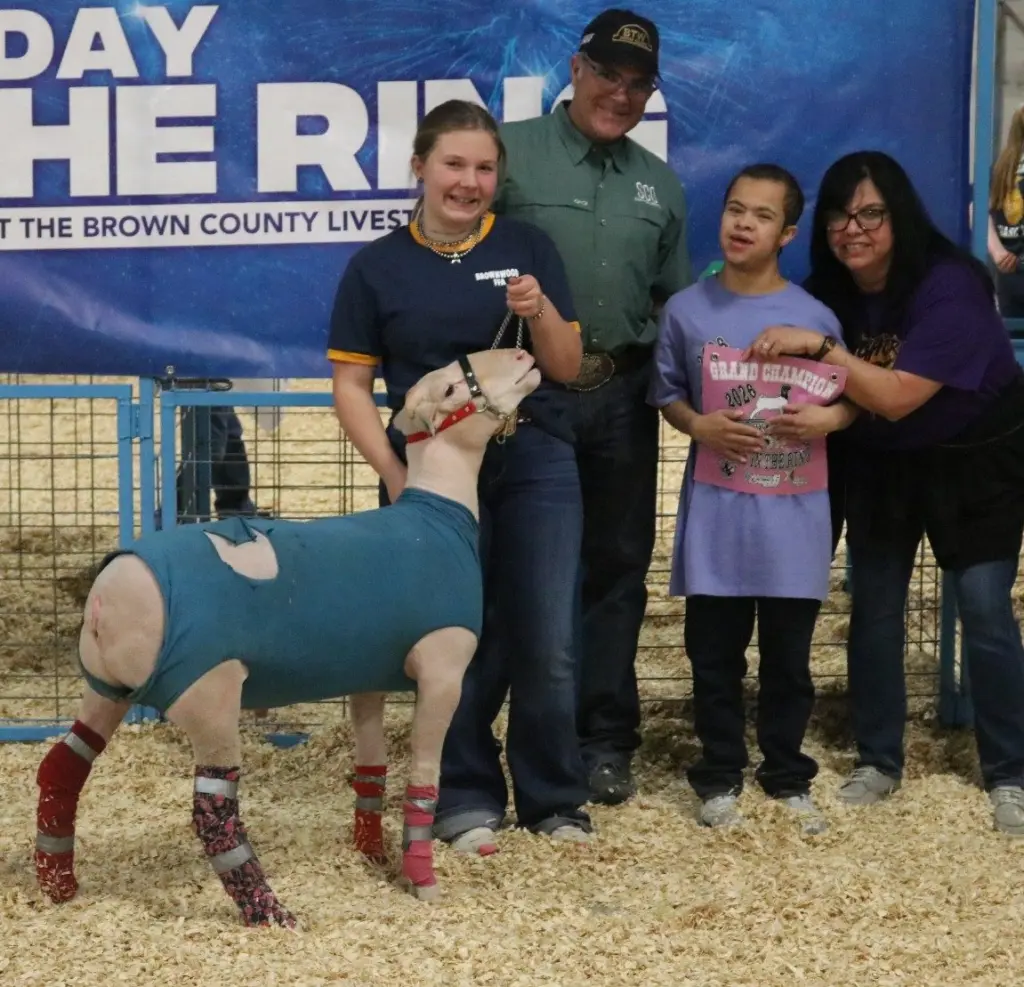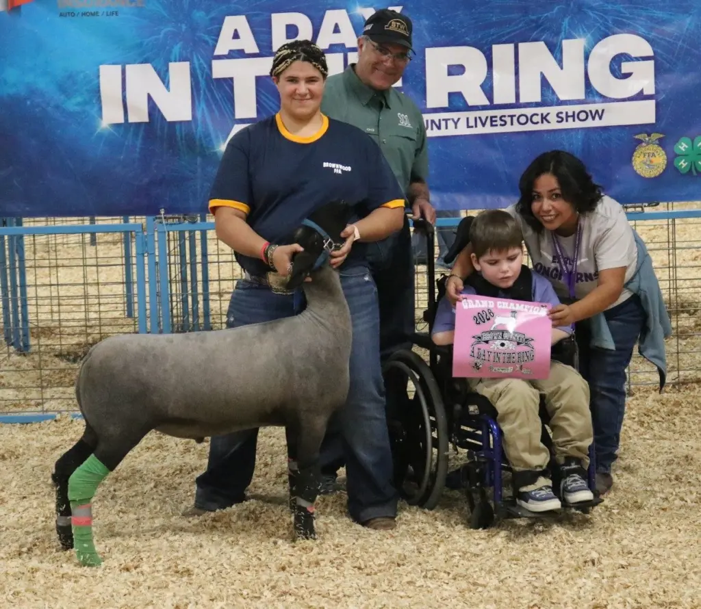The objective of A Day in the Ring is to give differently able youth an opportunity to participate in the Brown County Youth Fair. Exhibitors were partnered up with a Brownwood or Early 4-H or FFA member who help them present their lamb in the show ring. Each exhibitor received a T-shirt, championship banner, and the opportunity to show.