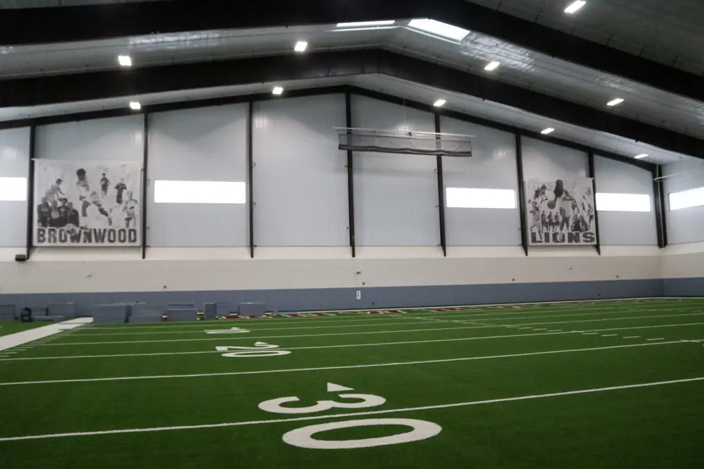 Brownwood ISD Bond Program manager Tammy Gray said the entire structure, built by Waldrop Construction, is in the neighborhood of 94,000 square feet. The indoor practice portion itself is approximately, 89,900 feet – among the largest in the state of Texas. There’s also a lobby that contains restrooms and storage areas.