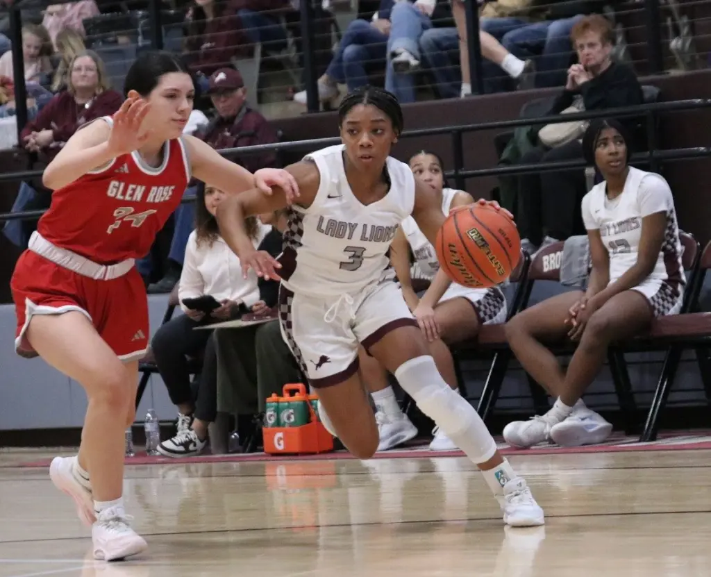 The Lady Lions converted just 18 percent (9 of 48) of their field goal attempts – 14 percent (4 of 27) on two-pointers and 23 percent (5 on 21) on three-pointers – but the Brownwood defense held Glen Rose (18-14, 3-3) without a point for a stretch of 16 minutes and 23 seconds.
