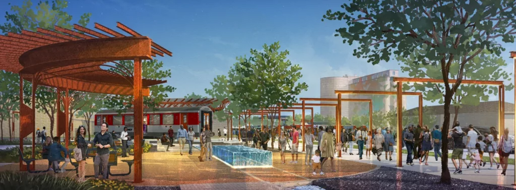 The City of Brownwood purchased the property and the eventual plan for the area around the site is to be the home of the Event Center Railyard Park. According to the City’s Downtown Master Plan, this block along Carnegie Street and Baker Street is an important nexus between incoming traffic, the Core, Coliseum, and the Event Center. It is a prime opportunity to connect the most energetic parts of Downtown. The proposed Railyard Park brings additional open space to Downtown and serves the functional purpose of funneling pedestrian traffic from main corridors to the Event Center and performance venue. Like the art park, while not designed only for children, this area is meant to provide spaces for families to enjoy.
