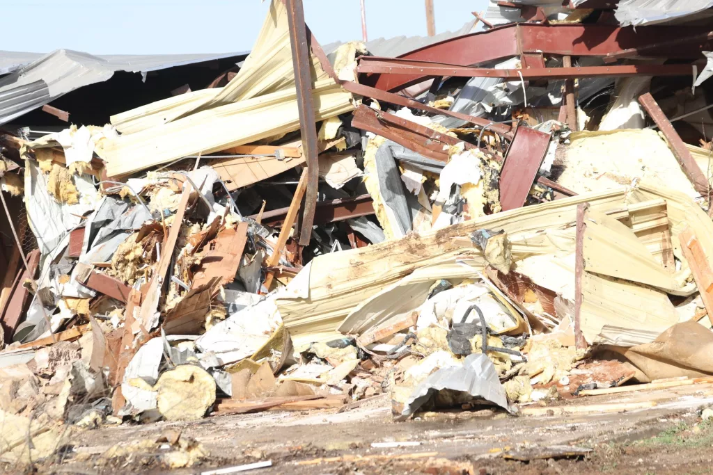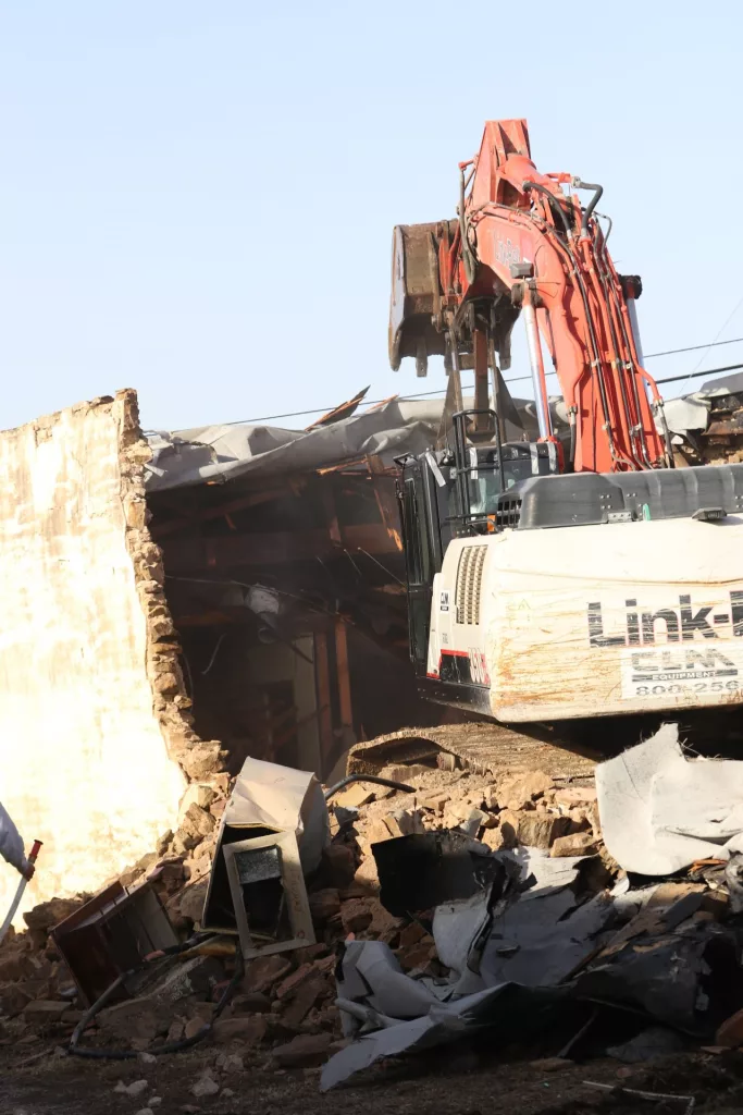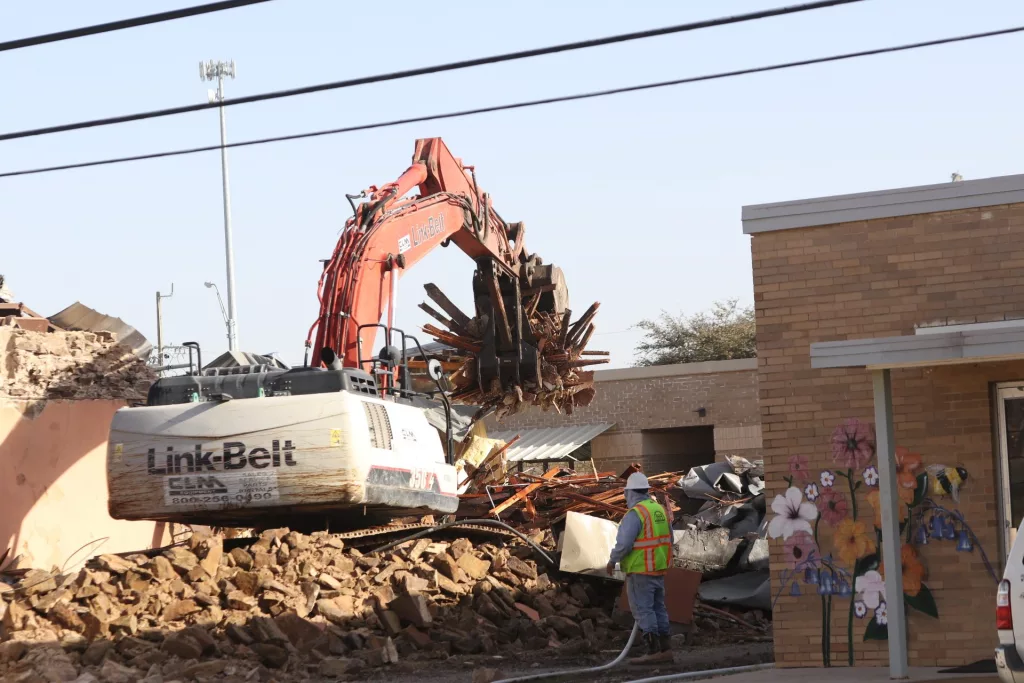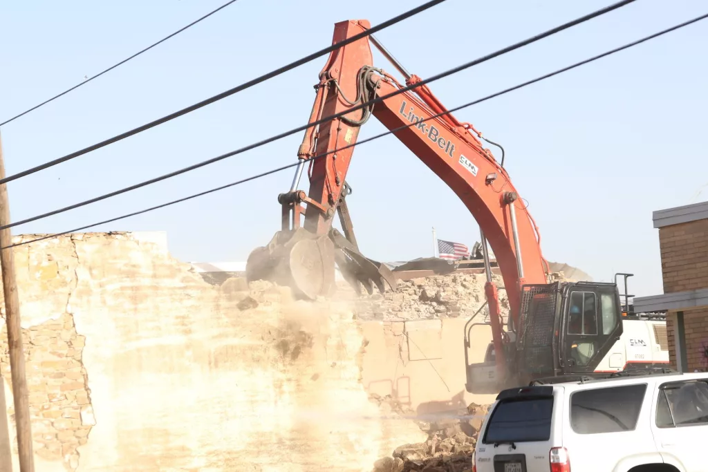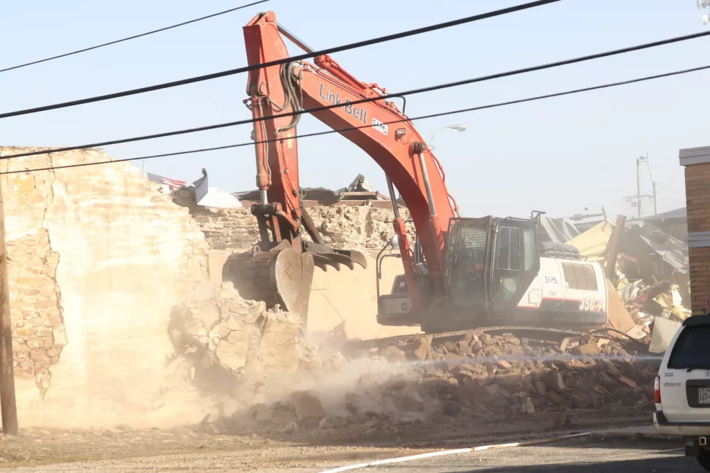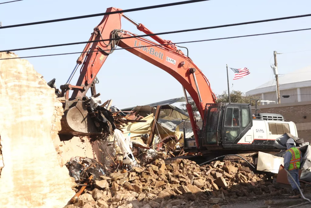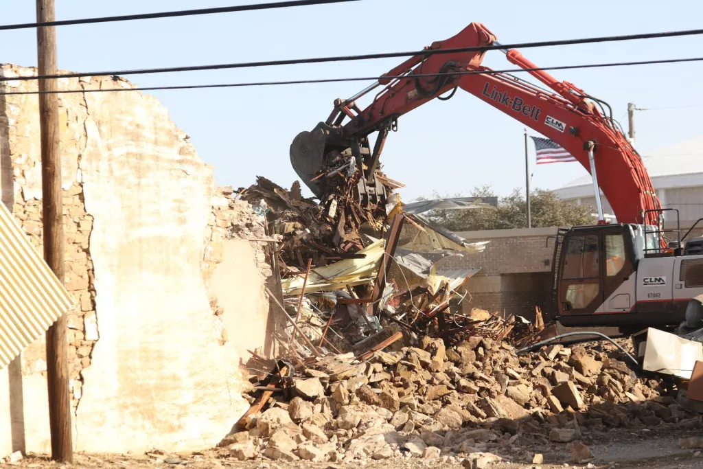 Demolition of the former Keepsakes, located at the intersection of Carnegie and Lee Street in downtown Brownwood, was in full swing Tuesday morning.