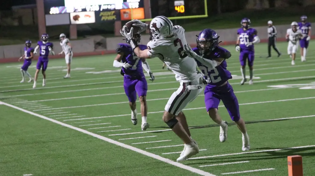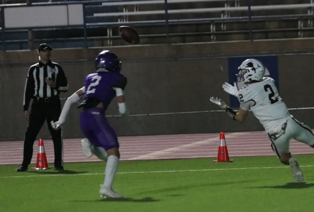 Canyon punted the ball back to Brownwood after its next possession, and the Lions marched 55 yards in five plays as Coalson and Noe again connected from 19 yards out on the first snap of the fourth period, as the Eagles’ lead was reduced to 24-14. Coalson finished the season with 1,925 passing yards and 24 scoring tosses, while Noe grabbed 51 receptions for 989 yards with 13 trips to the end zone, and recorded 1,142 all-purpose yards with 15 touchdowns.