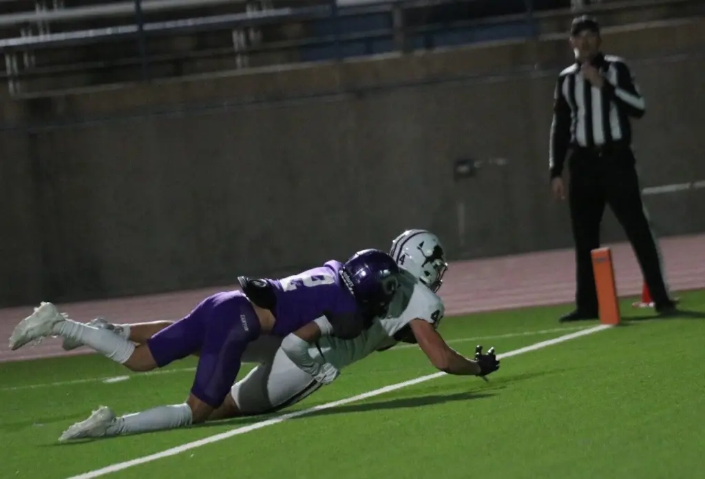 Then, after forcing another Canyon punt, the Lions drove 59 yards in eight plays as Coalson – who completed 13 of 20 passes for 234 yards – threw the last of his three touchdown passes to Hudson Fry, who dragged a defender into the end zone over the final 5 yards of his 28-yard scoring reception with 1:21 remaining.