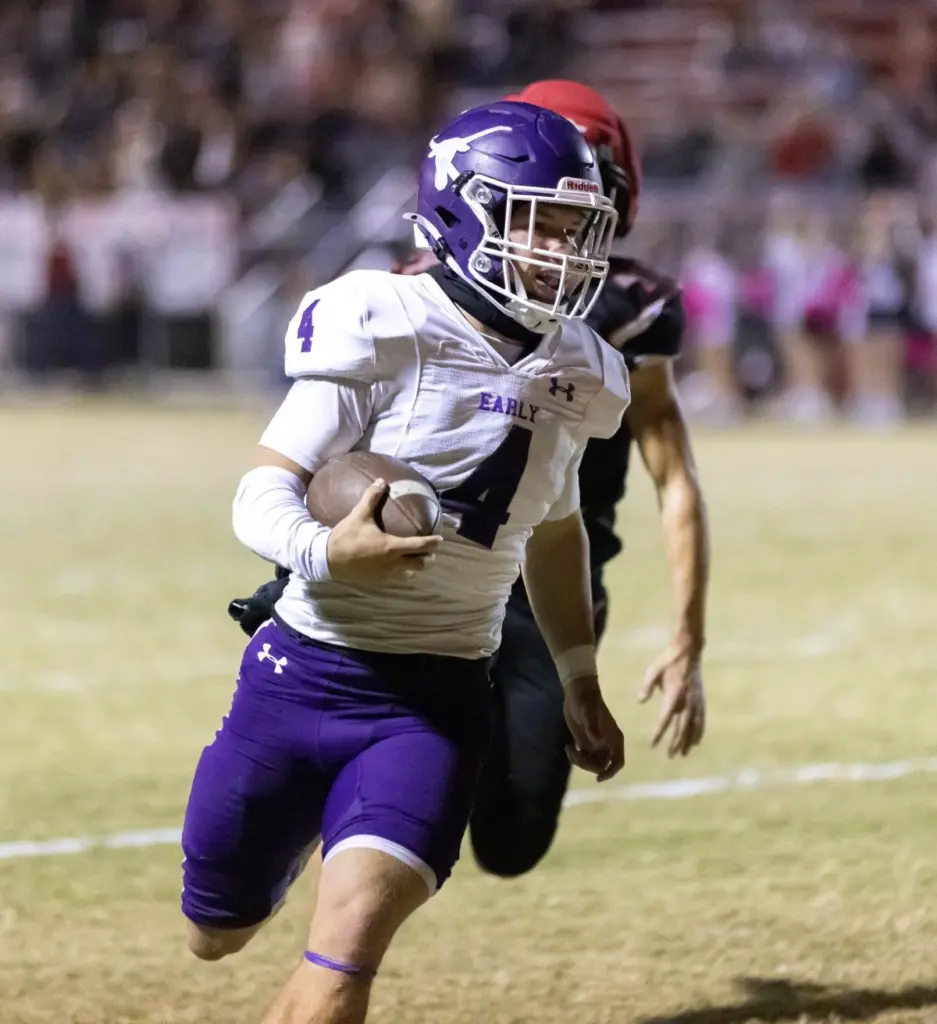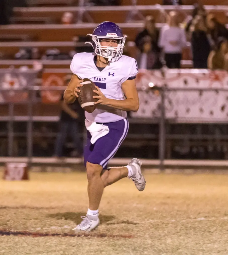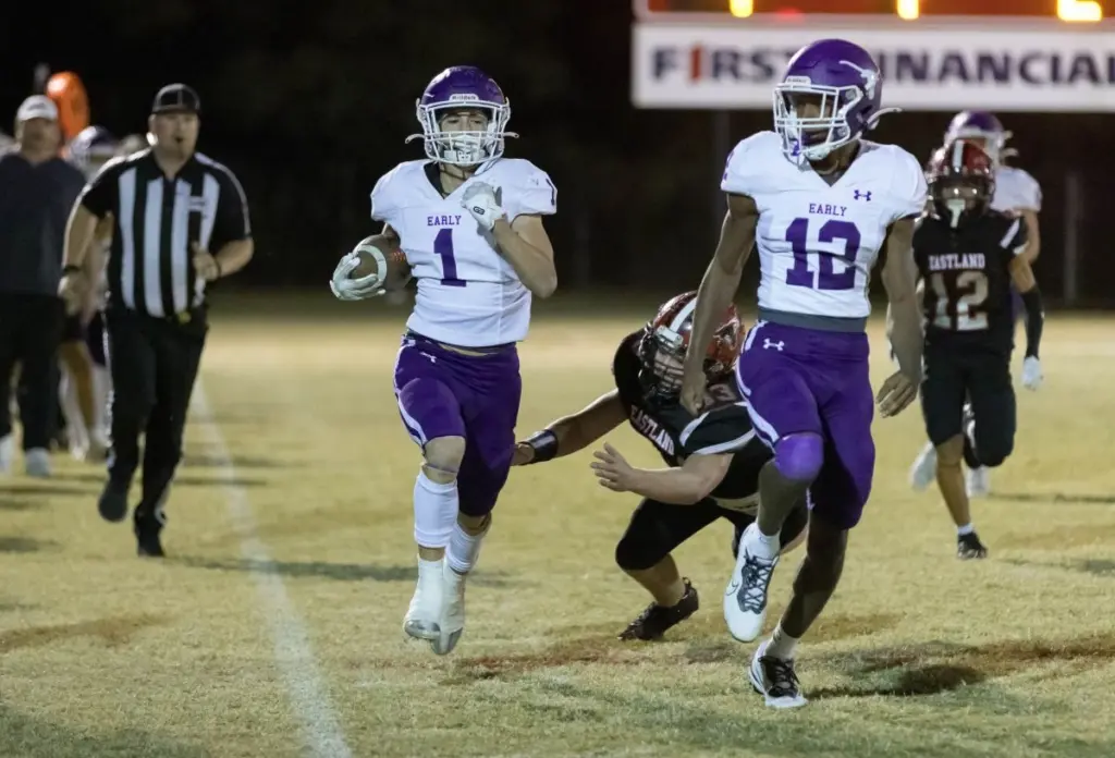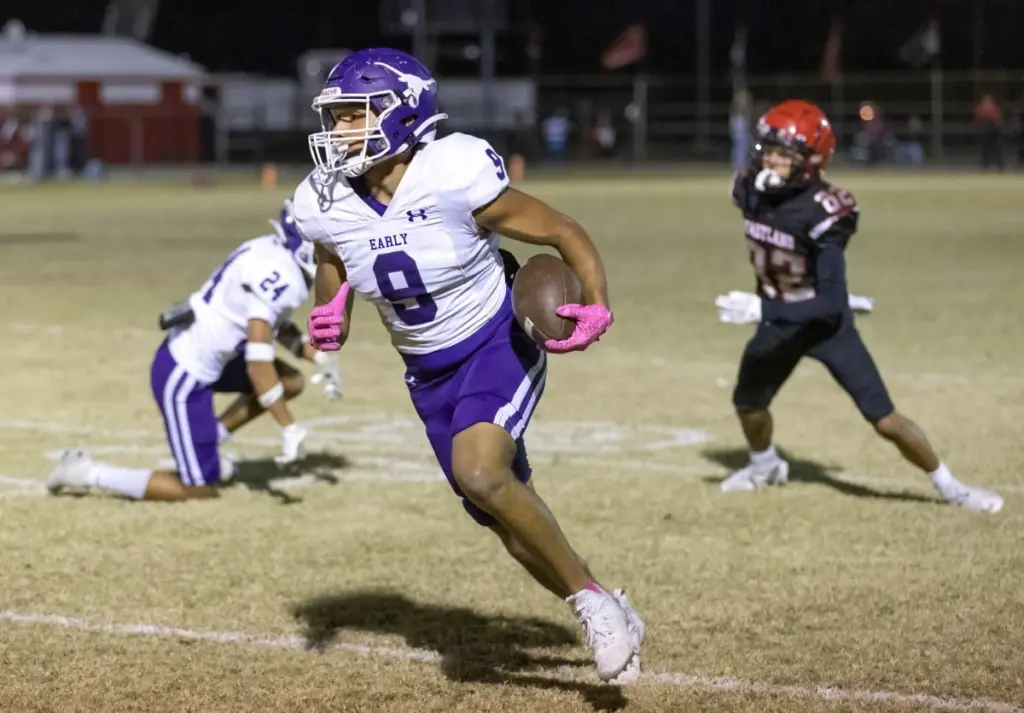 Early (4-5, 3-1) produced 452 yards of total offense – 254 rushing and 198 passing – against the Eastland (0-9, 0-4) defense. The Longhorns jumped out to a 29-0 lead after one quarter, which grew to 43-0 by halftime and 64-0 after three frames.