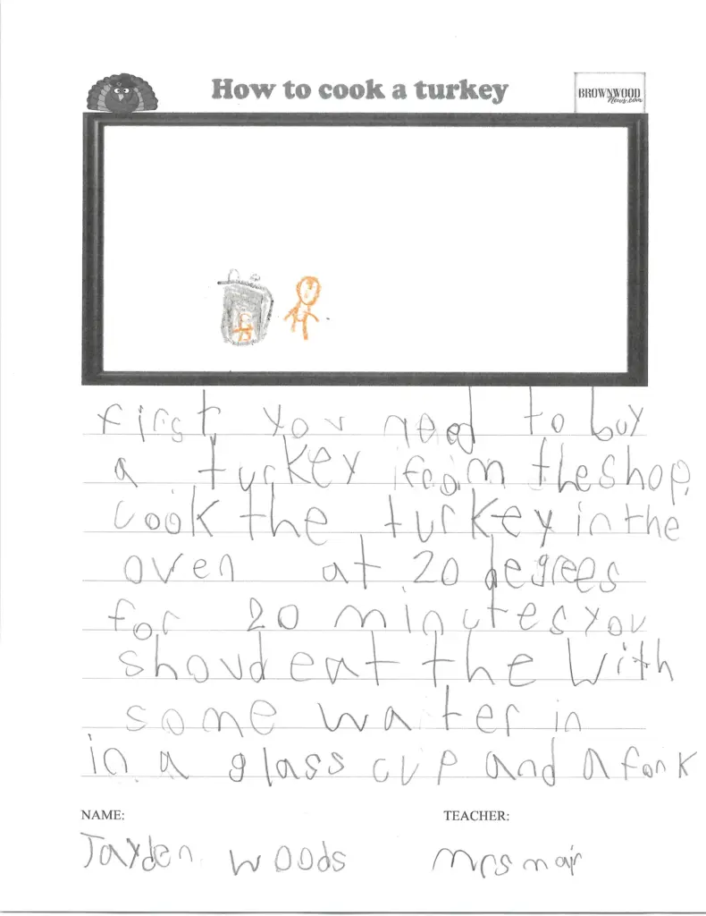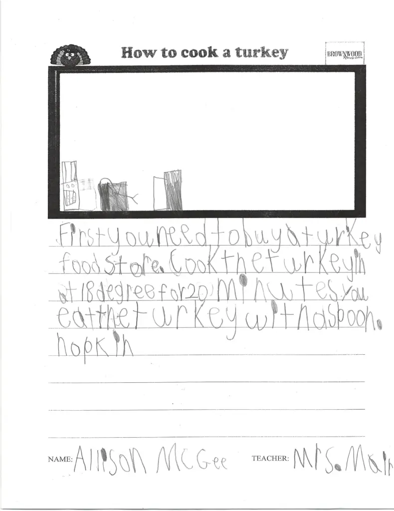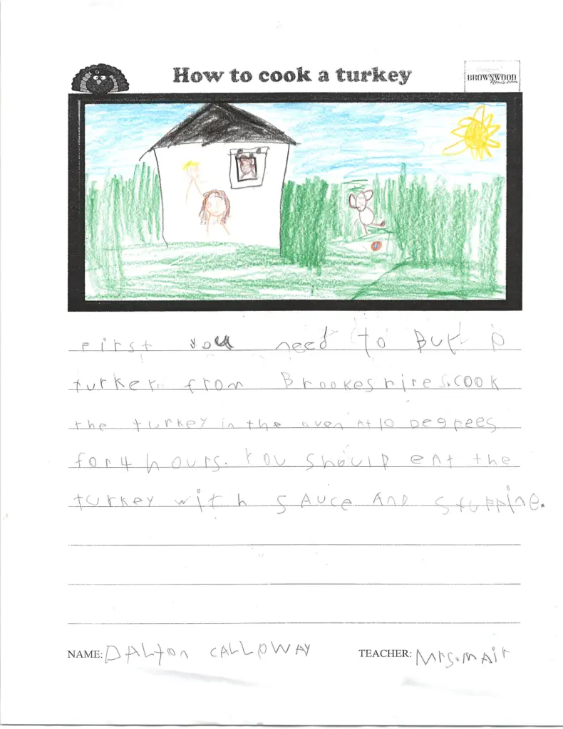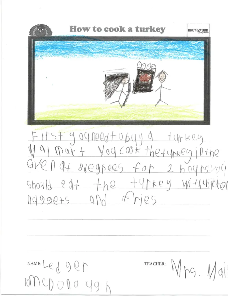 HOW TO COOK A TURKEY: Coggin Elementary November 26, 2025 at 8:28 am Updated: December 1st, 2025 at 7:10 am Derrick Stuckly Local News Trending Tweet Share Reddit +1 Pocket LinkedIn Brown County first-graders share their recipes and instructions on how to prepare a traditional Thanksgiving meal: coggin_mair-18 coggin_mair-17 coggin_mair-16 coggin_mair-15 coggin_mair-14 coggin_mair-13 coggin_mair-12 coggin_mair-11 coggin_mair-10 accel-health-2023-copy coggin_mair-9 coggin_mair-8 coggin_mair-7 coggin_mair-6 coggin_mair-5 coggin_mair-4 coggin_mair-3 coggin_mair-2 coggin_mair-1 smile-doctors-football-25-e1756395294178 « Previous123Next »