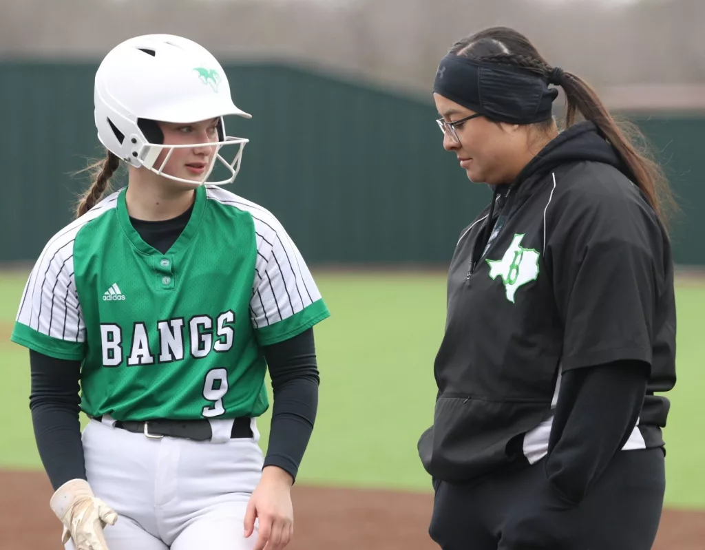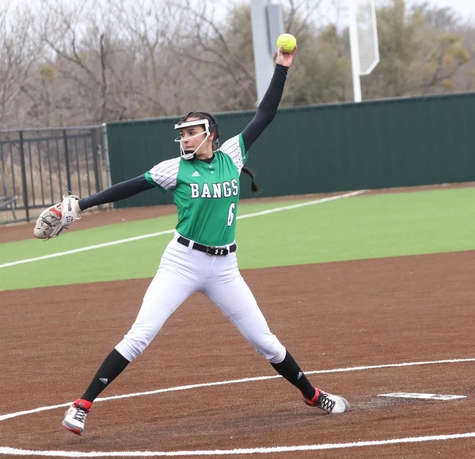 Bangs scored in every inning as Abby Wolf homered twice and drove in seven runs, while Julianna Ethridge also contributed a home run and tallied two RBIs. Neeley Bradley, Cheyenne Rush and Stormy Stringer each contributed two hits – and Bradley and Stringer each drove in a run – while Jaylee Valdez and Aubree Buford all added hits.
