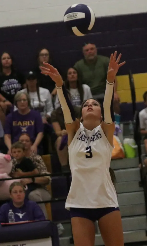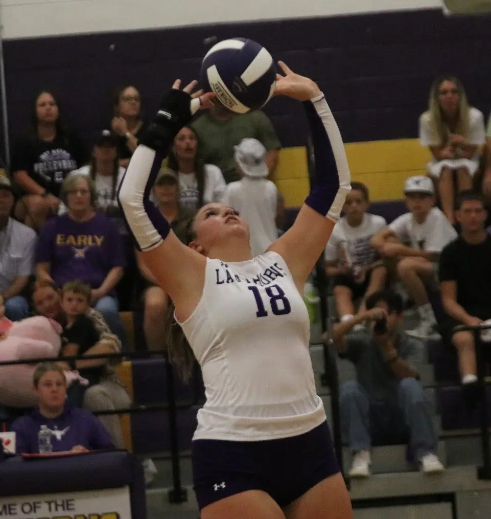 Early’s offensive attack Tuesday was sparked by Aubrie DeVillier’s 18 kills along with 15 from Jensyn Rasor, eight from Kailyn Gallardo, three each from Ellie Shea and Grey Pruett, and two by Cassidy Frerichs.
