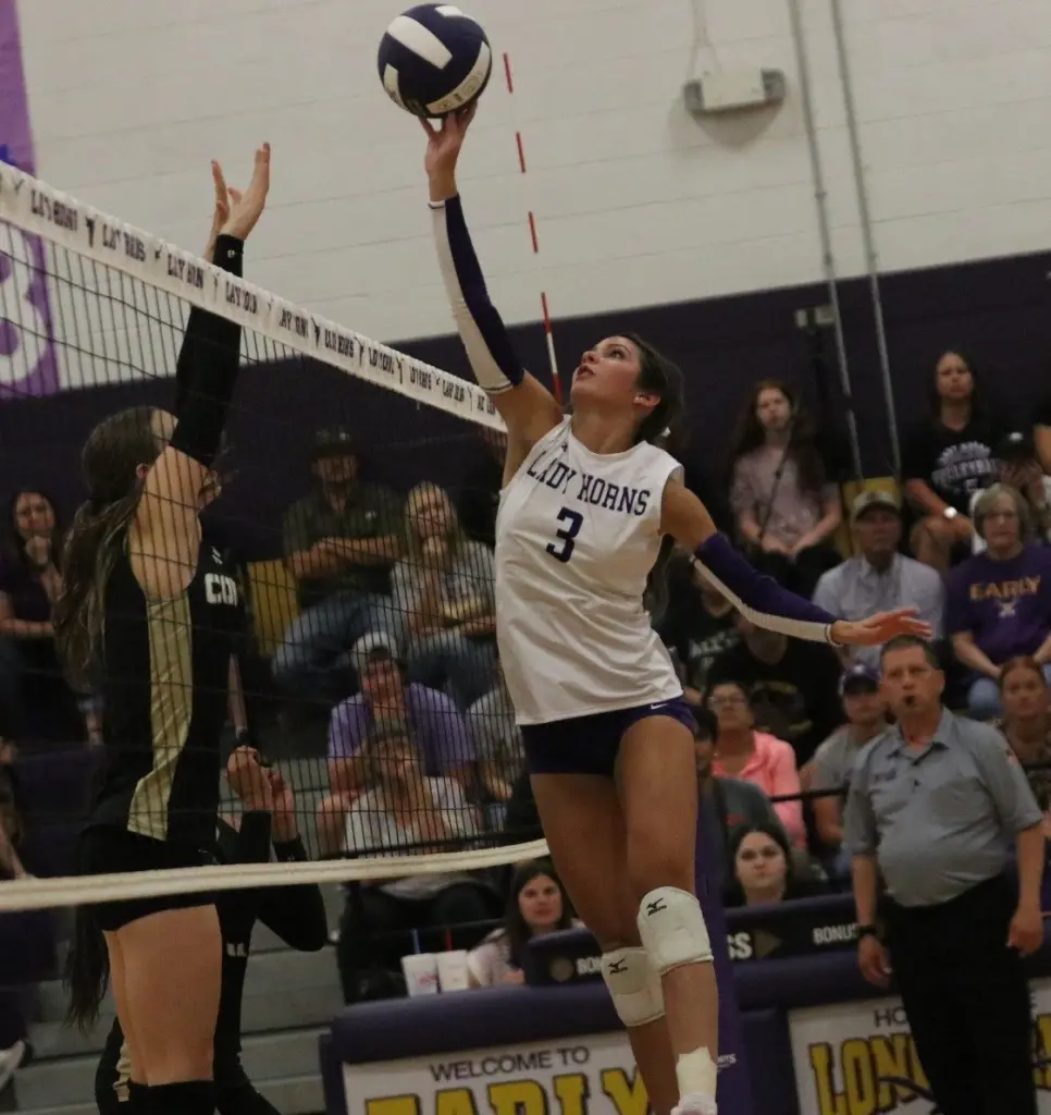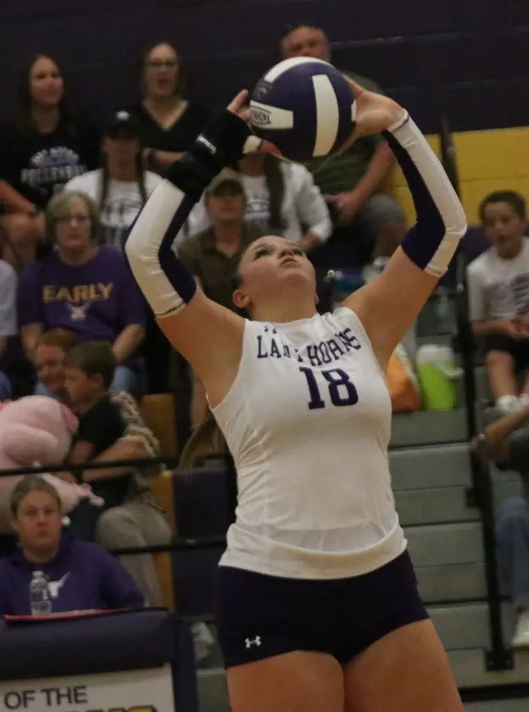 Early (19-5, 1-2) – which has already surpassed last year’s win total – was upended by Comanche (3-0 in district) in the tiebreaking set of the championship match of the Heart of Texas tournament at the Brownwood Coliseum earlier this season, and the Lady Horns’ 2024 campaign was ended in a playoff play-in game by the Maidens after the two teams split their district matches.