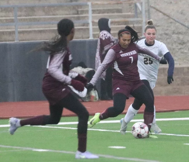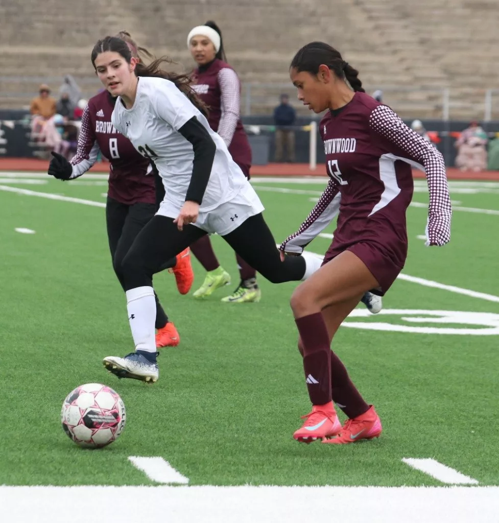 Then with 31:20 left in the contest, a bit good fortune fell Brownwood’s way which led to the tying goal by Braycee Lee.