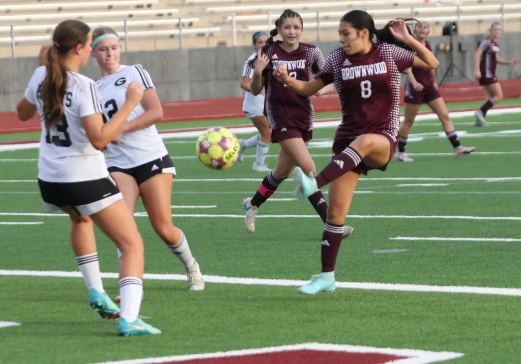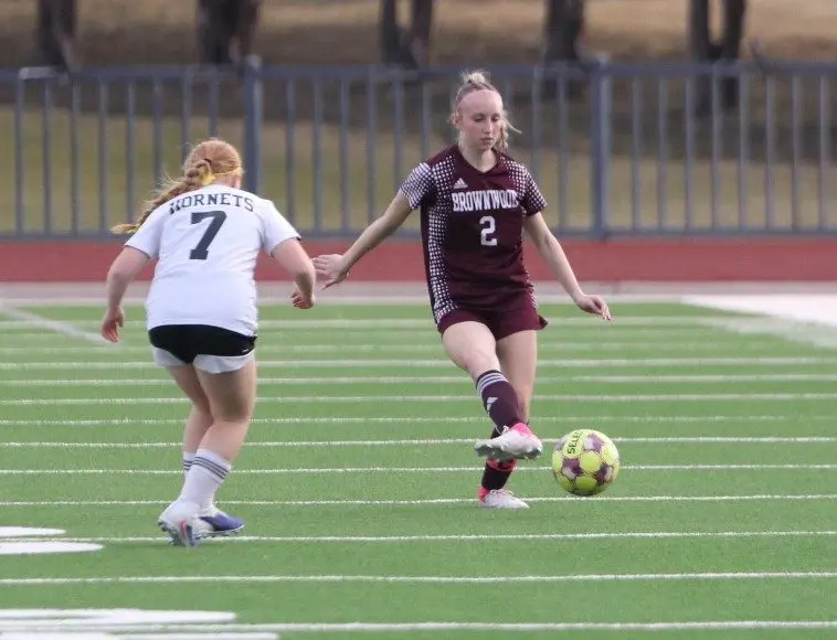 Kynlee Jefferson scored the first goal of each half for Brownwood, finding the net 9:57 into the opening session and 5:36 into the final stanza. Bella Garza assisted both Jefferson goals.