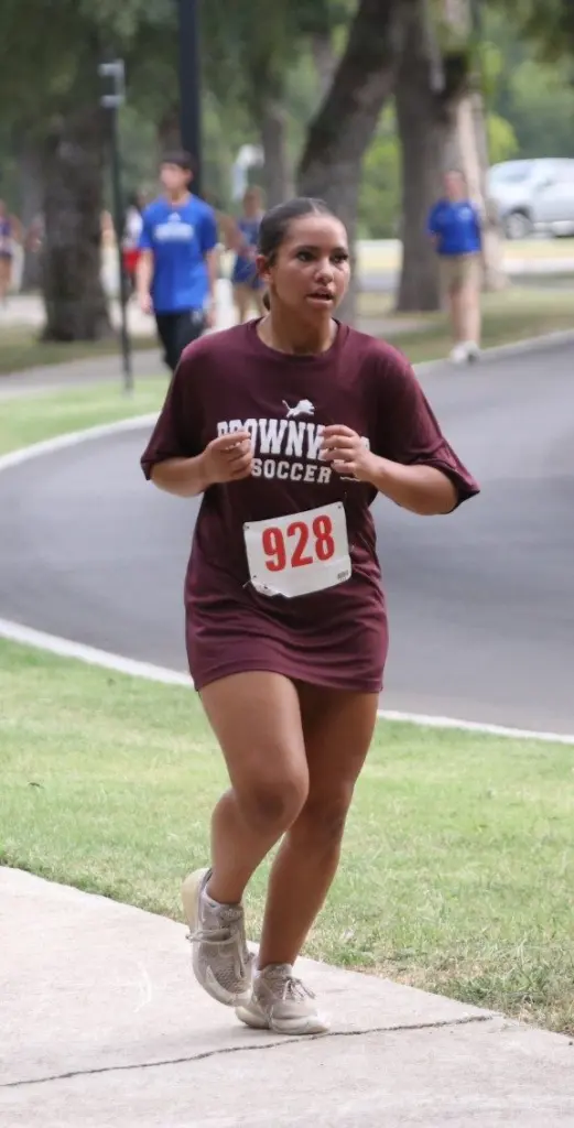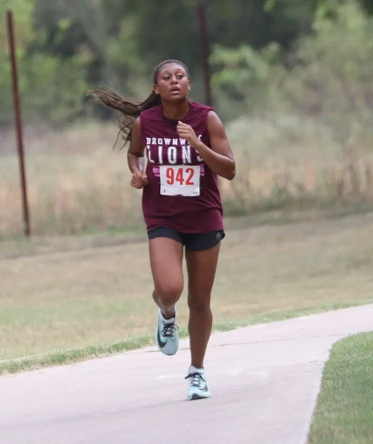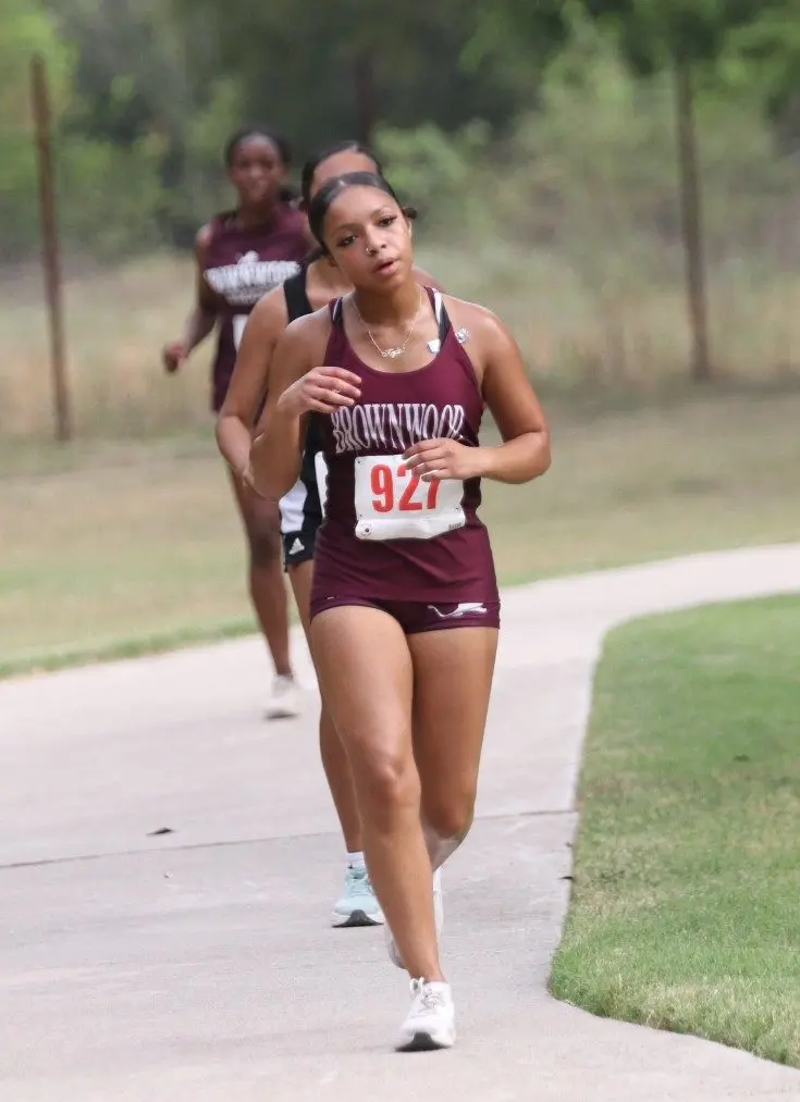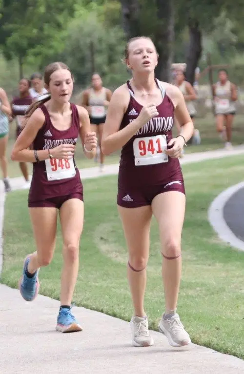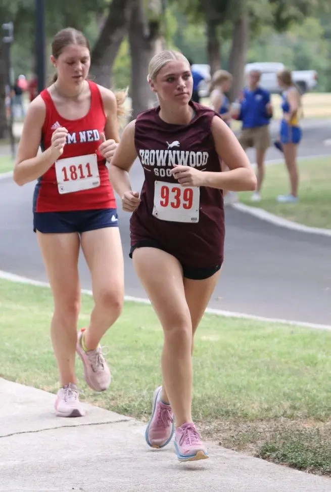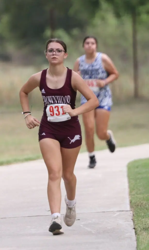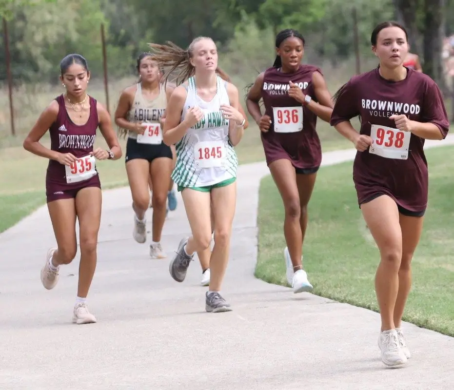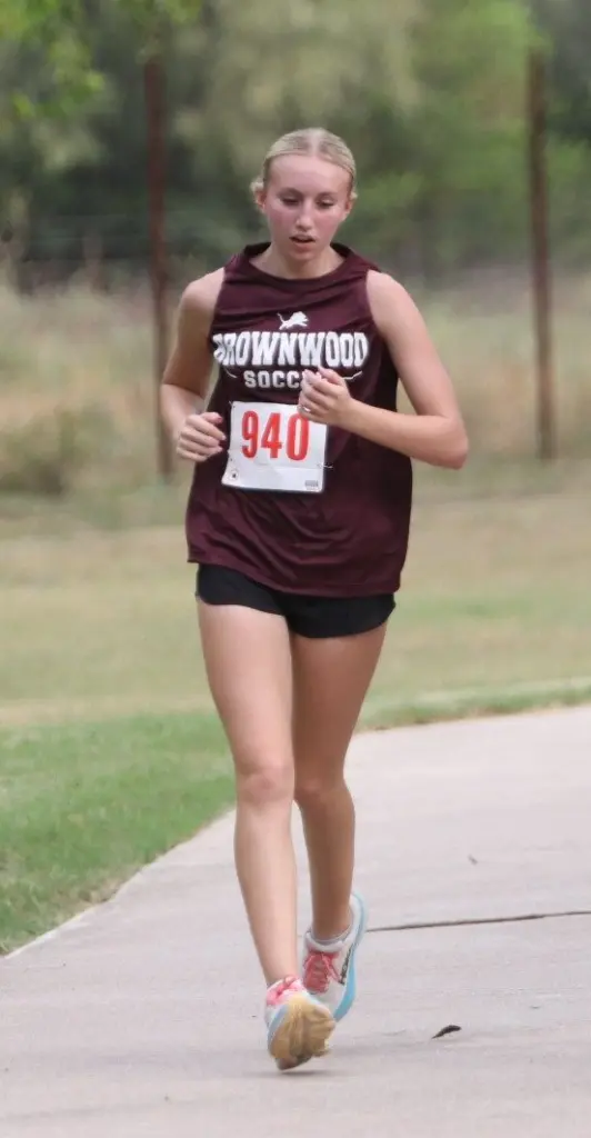Jade Morin finished first for Brownwood in a time of 14:15.12 trailed by Destiny Long (5th, 14:55.48), Destiny Sharp (8th, 14:59.54), Lanie Johnson (11th, 15:05.42), Isabella Garza (15th, 15:08.87), Icess Hall (16th, 15:09.15), Montanna Ramsey (24th, 15:26.19), Riley Abernathy (53rd, 16:42.21), Nixon Johnson (82nd 17:47.9), Kylie Arocha (83rd, 17:49.13), Kynlie Lewis (87th, 18:02.5), Nylah Hall (93rd, 18:14.86), Natalie Dillard (94th, 18:21.57), Brooklyn Bouldin (107th, 19:10.14), Gale Balfour (114th, 19:35.16), Alena Bernal (115th, 19:38.64), and Madison Weckwerth (116th, 19:44.06).