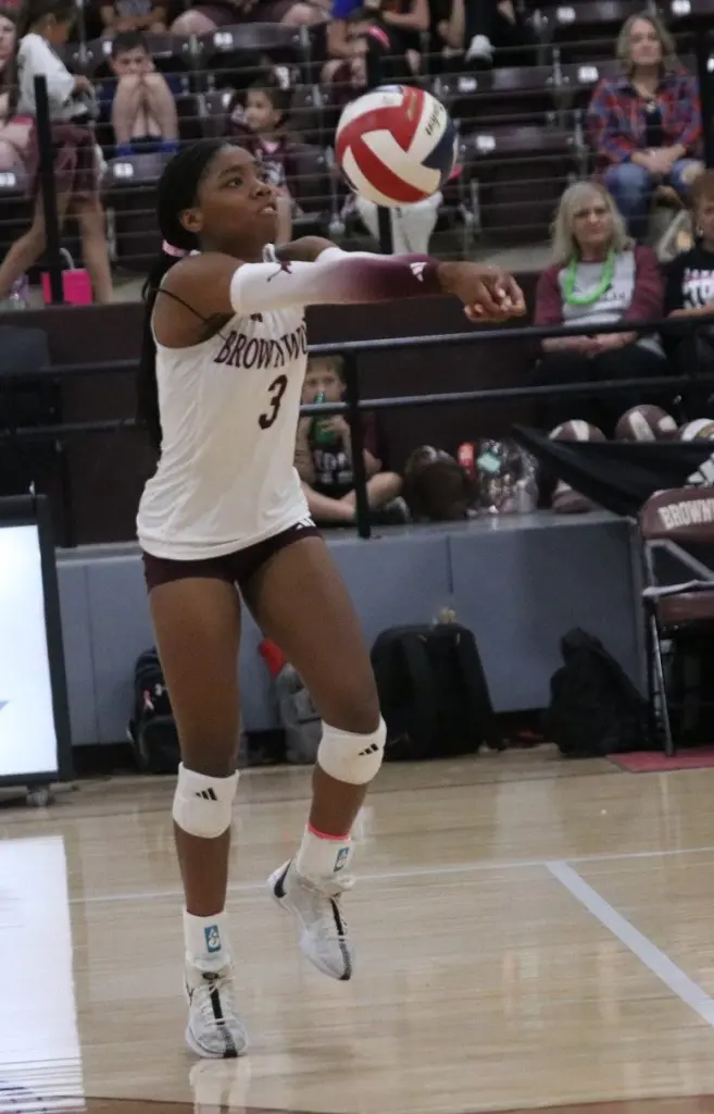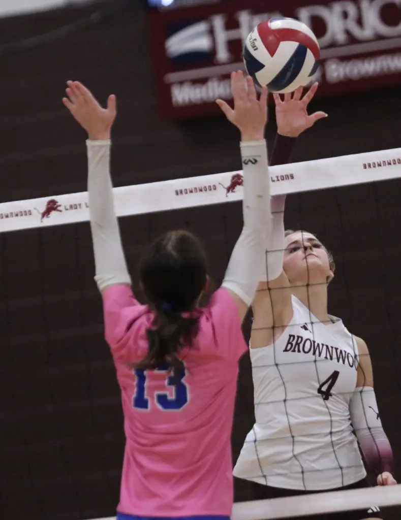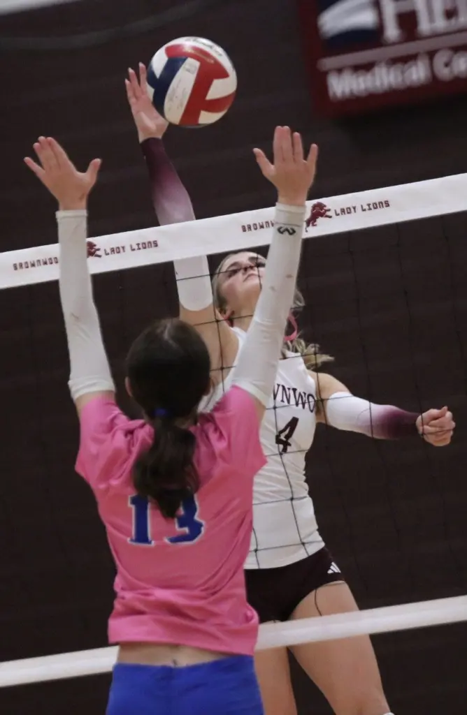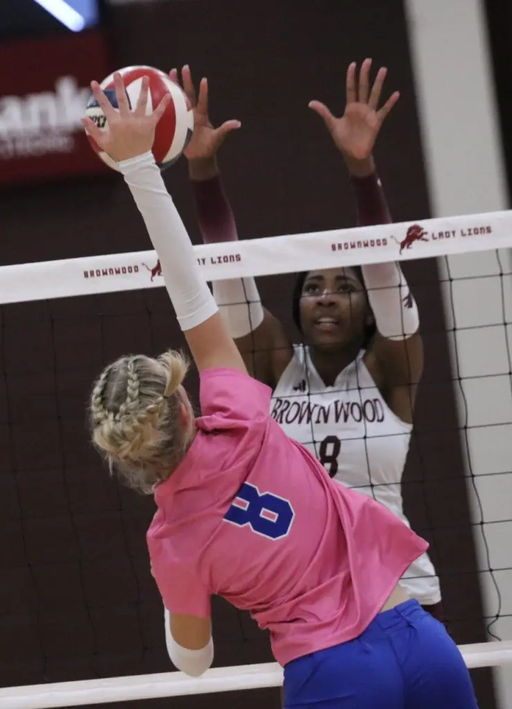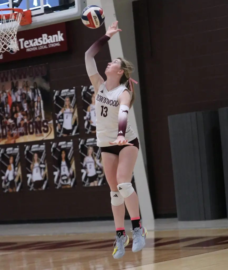 Aniah Hines led the offensive attack for Brownwood with 13 kills followed by six from Hannah Deen, three each from Demayha Hooker and Kaydence Chandler, two by Jentry Coalson, and one from Bellah Stokes.