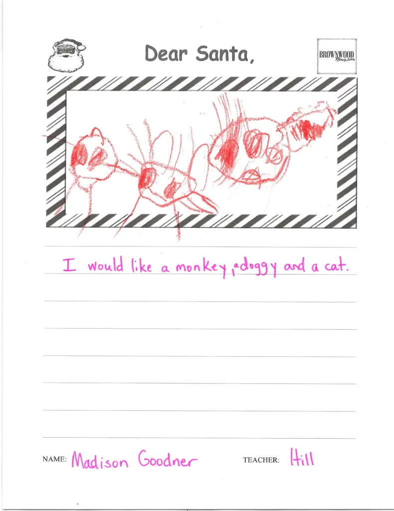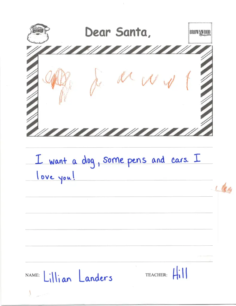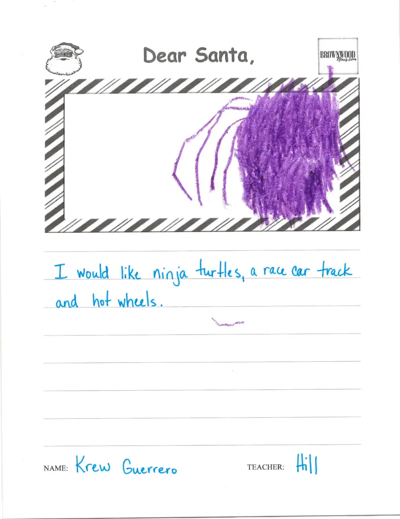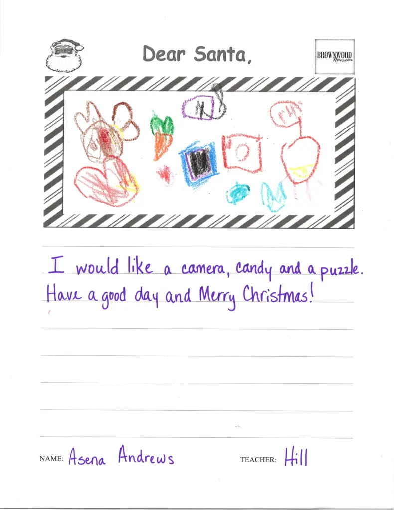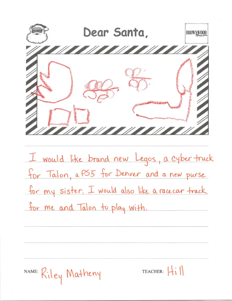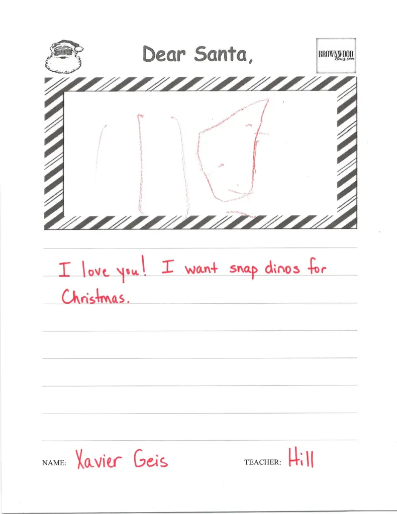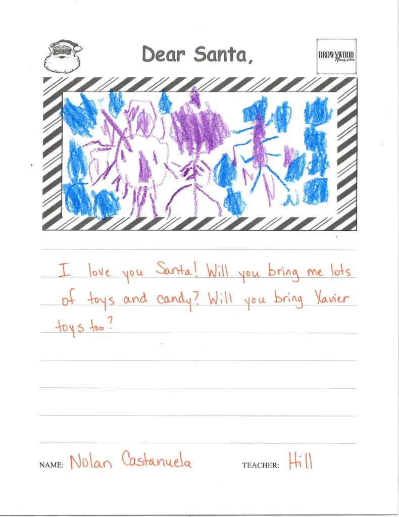 LETTERS TO SANTA: Northwest Elementary December 23, 2025 at 6:45 am Updated: December 23rd, 2025 at 7:40 am Derrick Stuckly Local News Tweet Share Reddit +1 Pocket LinkedIn The BrownwoodNews.com annual holiday tradition continues as Brown County students share their Christmas wishes with Santa Claus: nw-pk-hill-21 nw-pk-hill-20 nw-pk-hill-19 nw-pk-hill-18 nw-pk-hill-17 nw-pk-hill-16 nw-pk-hill-15 nw-pk-hill-14 nw-pk-hill-13 nw-pk-hill-12 nw-pk-hill-11 nw-pk-hill-10 smile-doctors-football-25-e1756395294178 nw-pk-hill-9 nw-pk-hill-8 nw-pk-hill-7 nw-pk-hill-6 nw-pk-hill-5 nw-pk-hill-4 nw-pk-hill-3 « Previous123...7Next »
