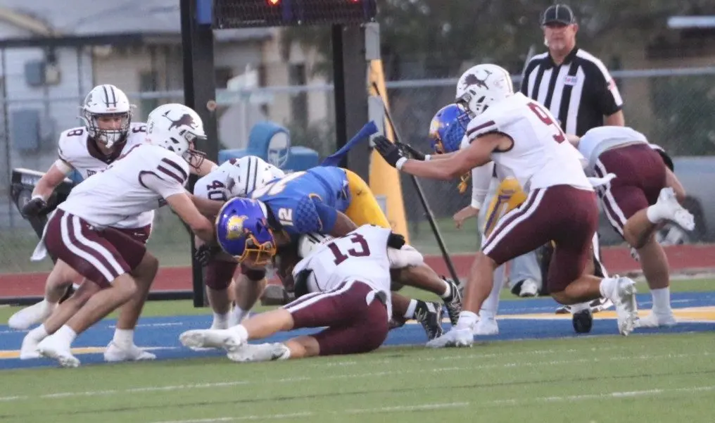 Brownwood’s first possession ended on a fumbled snap at the Lion 24, and eight plays later the Pirates were back in the end zone on a 1-yard plunge by Caden Roland for a 14-0 advantage at the 4:44 juncture of the first period.