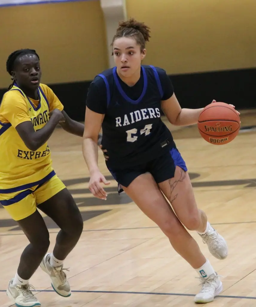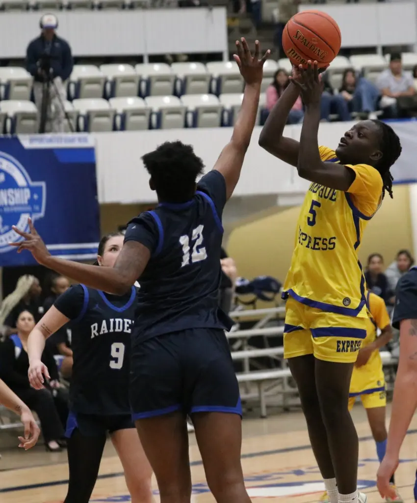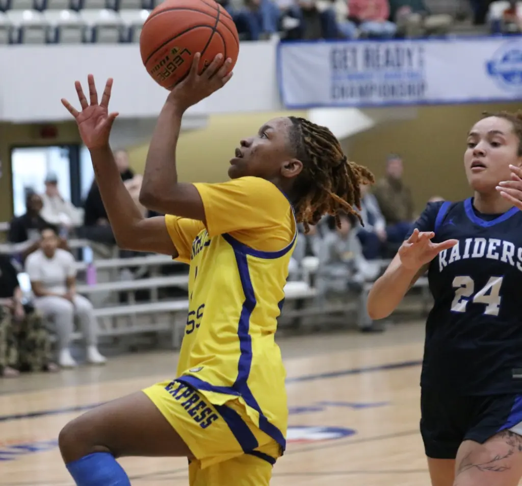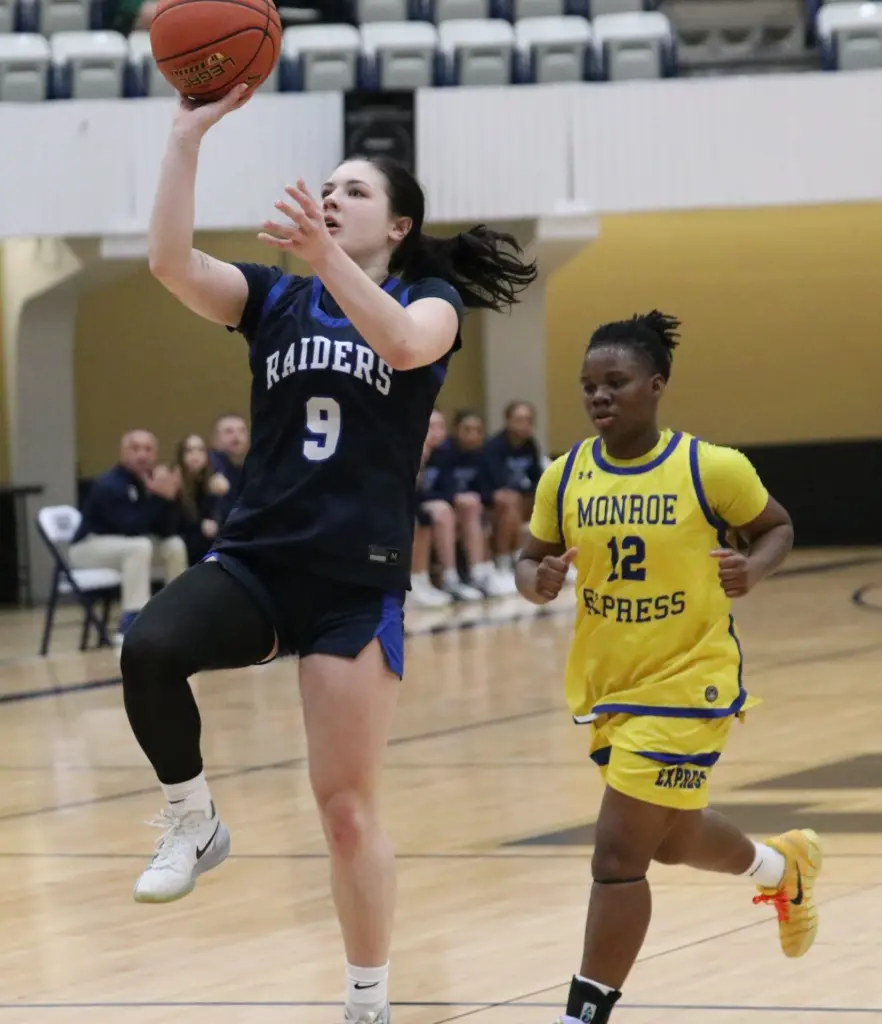 Trailing by as many as 15 points in the second period, the No. 5 seed Fulton-Montgomery Community College Lady Raiders stormed from behind to force overtime and eventually upend the No. 4 seed Monroe University-Bronx Express, 64-63, Thursday afternoon in championship bracket action.
