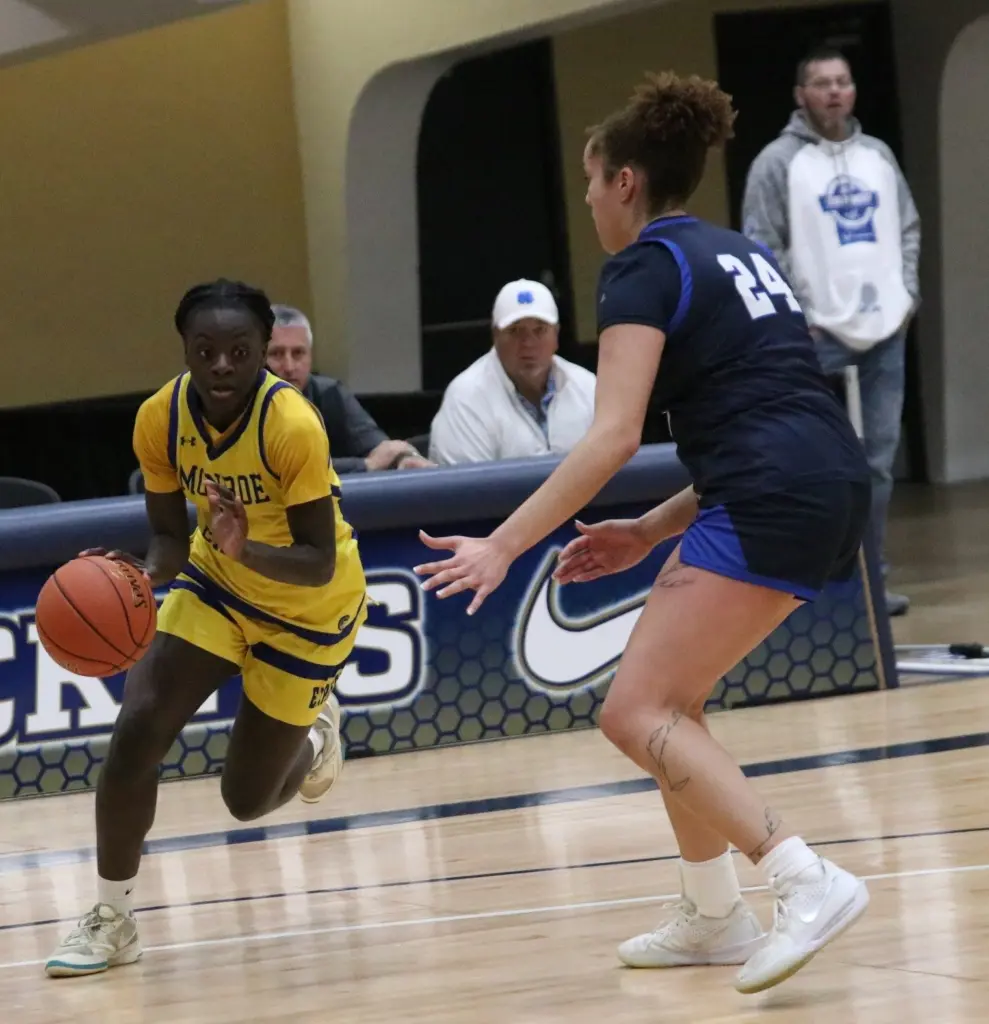 Monroe University-Bronx (26-7) – from Bronx, New York – led 16-7 after one quarter and 26-19 at halftime, but Fulton-Montgomery (24-3) – from Johnstown, New York – took a 40-38 advantage heading to the fourth period.