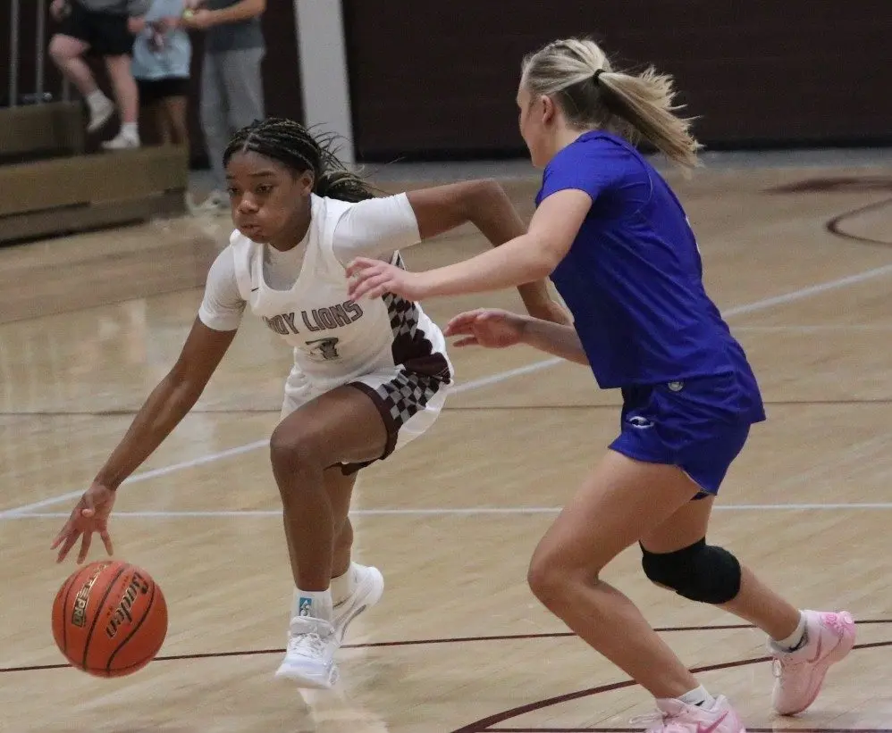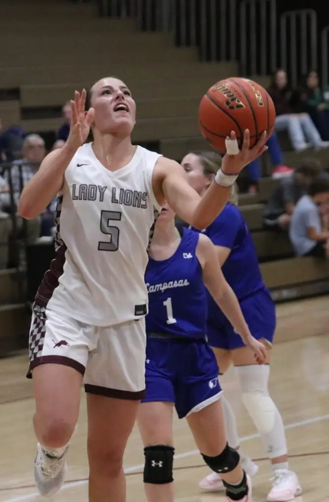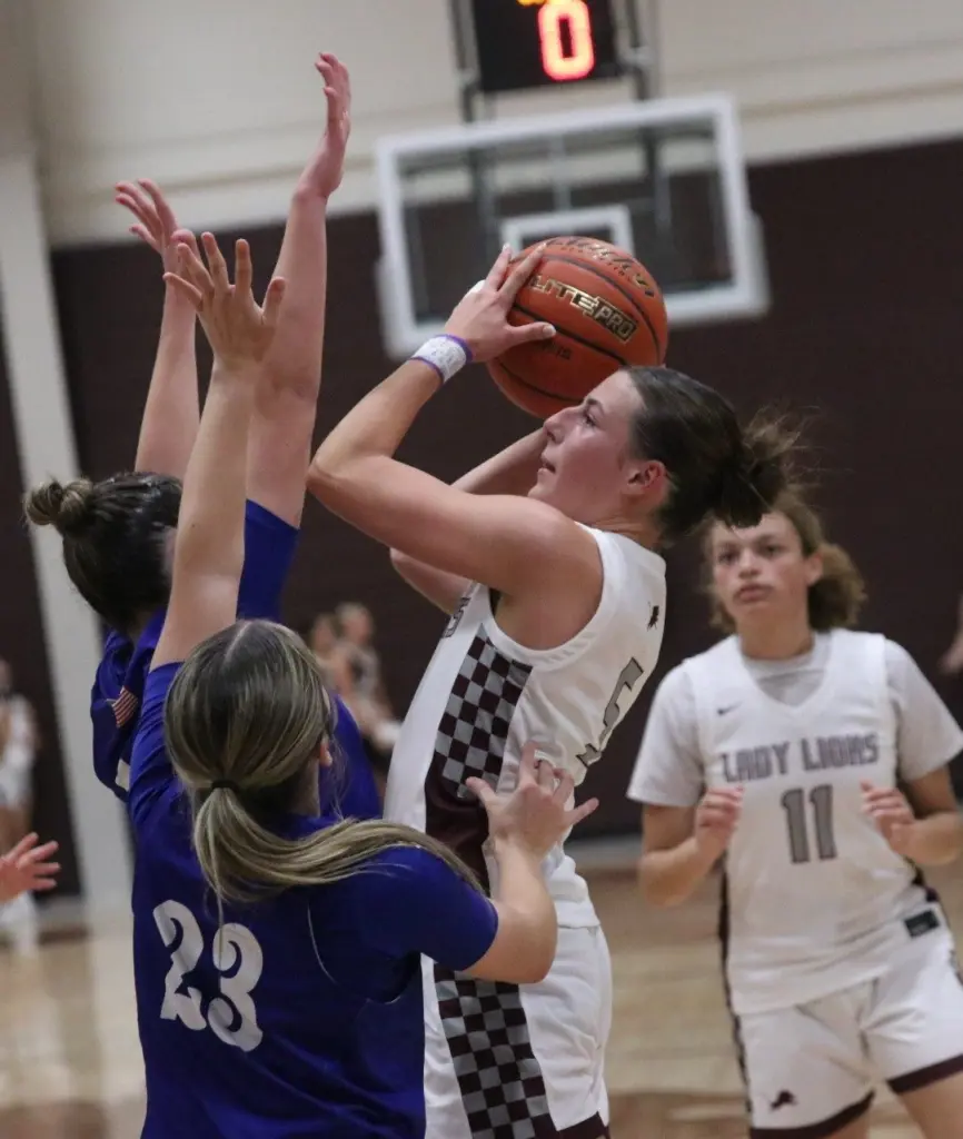 “We were flying around and had high energy, especially on the offensive end,” said Lady Lions 17th-year head coach Heather Hohertz. “We moved the ball really well. When we were engaged defensively we shut them down, didn’t allow them to get to the basket and only allowed a few shots to get off. They had four threes against us in the first half, the rest of their points were on free throws. I told them we have to close out, we can’t scramble and we have to rotate defensively. That’s something we still have to get better at when we’re playing man and when we’re playing zone, rotating, and making sure we’re there on the catch and not standing. Sometimes we watch too much, especially when we’re not engaged up on the ball on the back side and we’re late rotating and getting beat off the dribble which creates shot opportunities for them.”