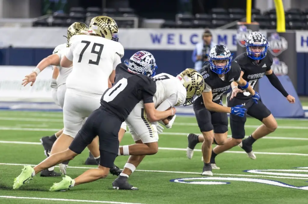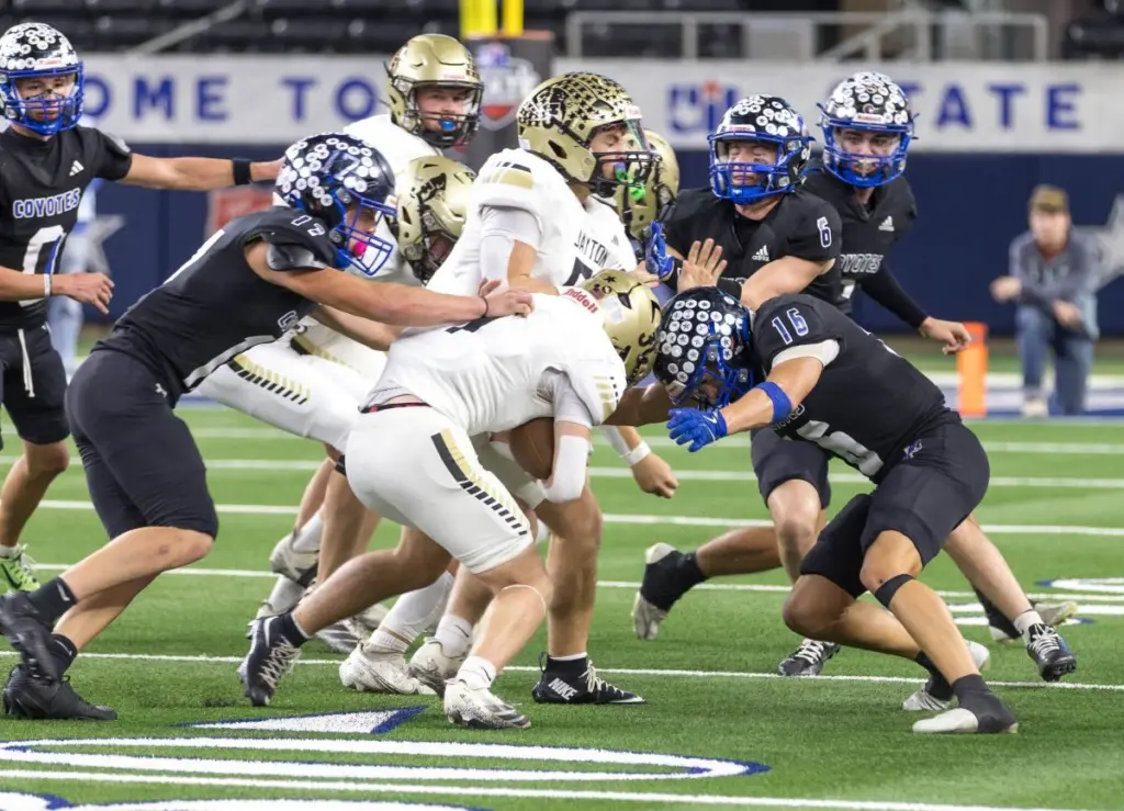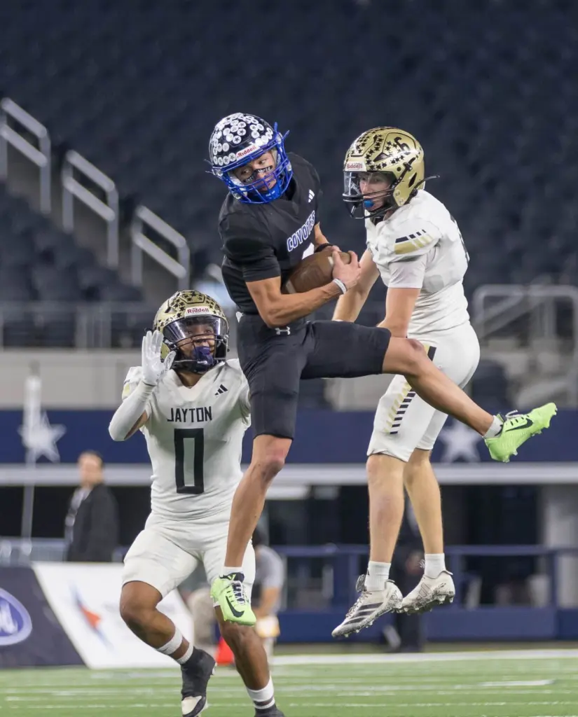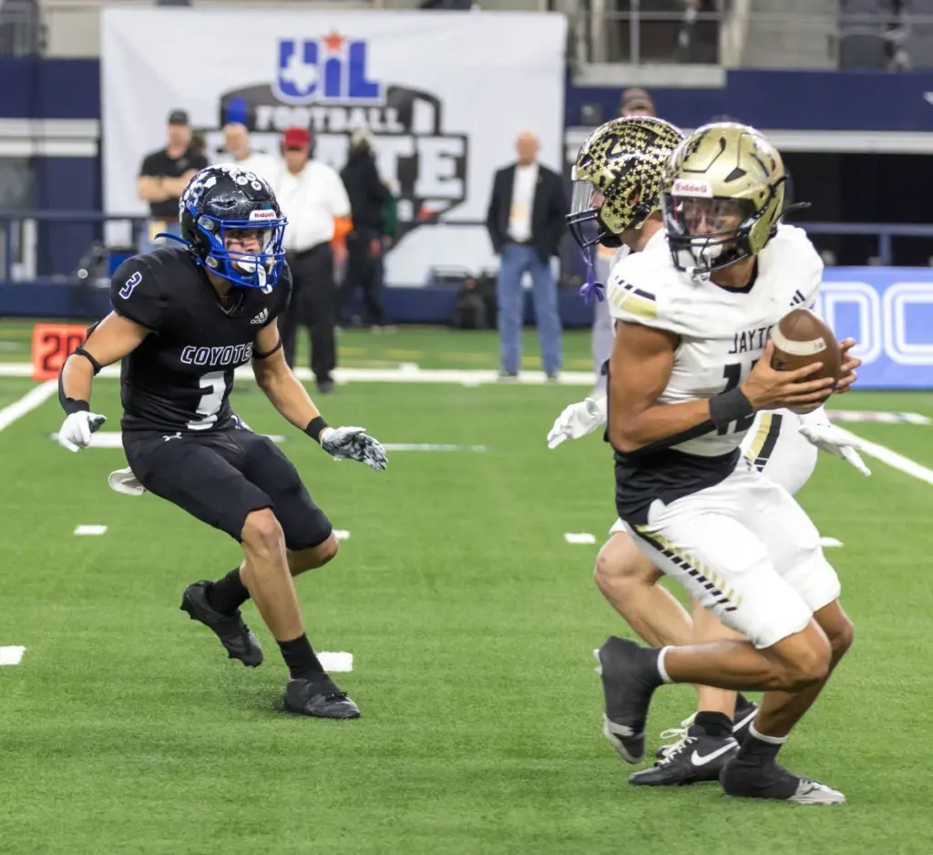 ARLINGTON – A historic performance kept the Richland Springs Coyotes from expanding on their record number of six-man state championships as the quest for No. 10 was derailed by the Jayton Jaybirds, who instead earned a second consecutive Class A Division II state title, 99-54, Wednesday afternoon at AT&T Stadium.