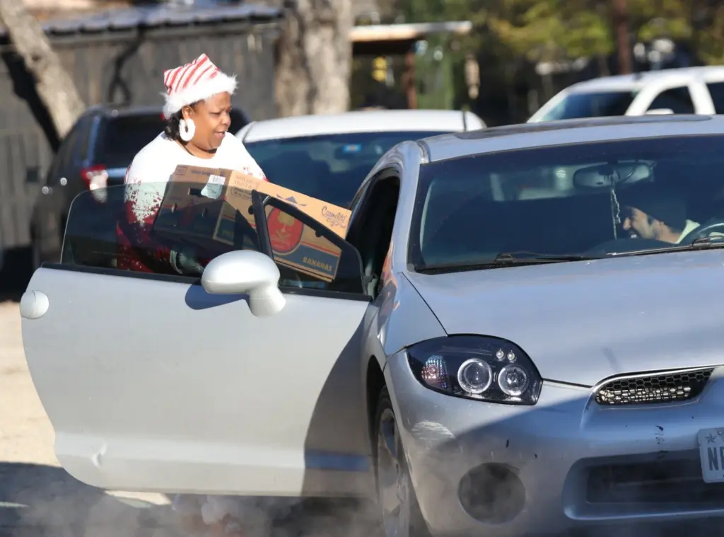 “It’s been a great turnout,” Miller said. “I got here at 6:15 a.m. and the first vehicle was in the parking lot at 6:45 a.m. We had them wait a little bit, and by 7:15 a.m. Third Street, Brady Avenue and the parking lot were completely full, so we started handing out boxes about 7:15 a.m. and we’ve been rolling since then. The people are so appreciative and we’re blessed to be able to help our community.”