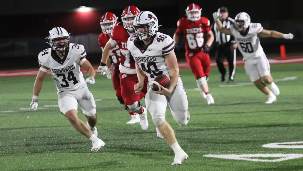 Along with Buffington’s game-changing sprint, Coalson added a first-half 38-yard scramble and Pearson picked up 11 yards on a second-half carry. Brownwood’s other 34 rushes during the game netted a total of 43 yards.