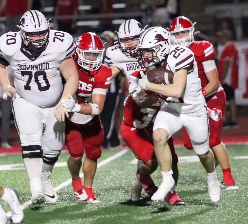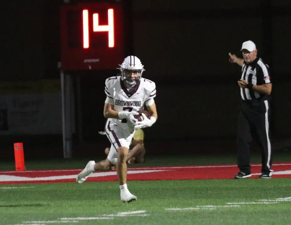 Behind a front five of Aidan Packheiser, Jackson Rainey, Gustavo Gonzalez, Avuid Gomez, and Rylan Martin, Brownwood finished with a season-high 329 yards of total offense – 174 yards through the air and 155 on the ground. Quarterback Judson Coalson connected on 10 of 20 passes for 174 yards with two scoring tosses and a pair of interceptions, and rushed for 34 yards. Trent Buffington led the ground game with 73 yards and a touchdown, and Connor Cornelius hauled in a pair of scoring receptions totaling 27 yards.