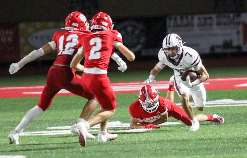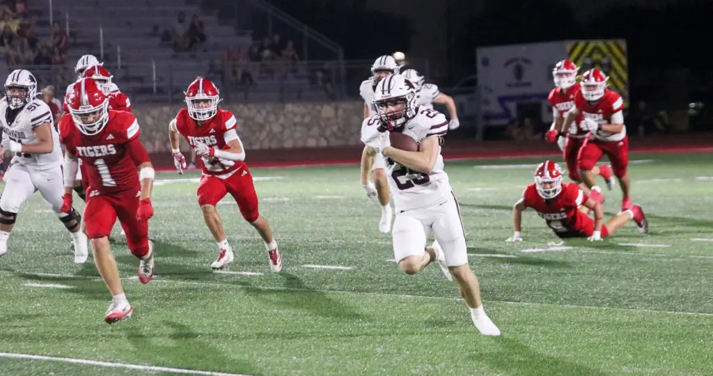 Glen Rose produced 283 yards, with 217 coming after halftime, as the Tigers threw for 186 yards and rushed for 97. Connally connected on 12 of 30 passes for 186 yards with a pair of scoring strikes and three interceptions, as Ryder Ribitzki hauled in five receptions for 78 yards and both touchdown tosses, and Tyson Sullivan rushed for 72 yards and a touchdown and also returned a kickoff 95 yards for six points.