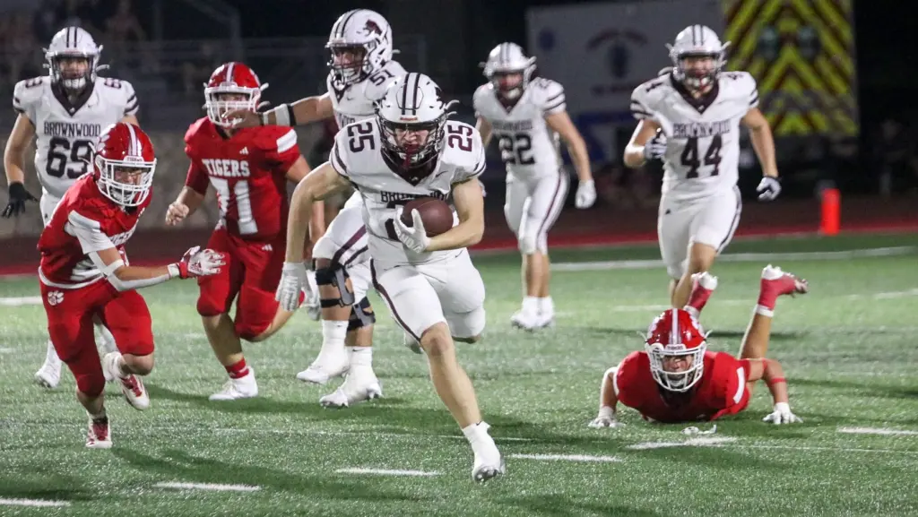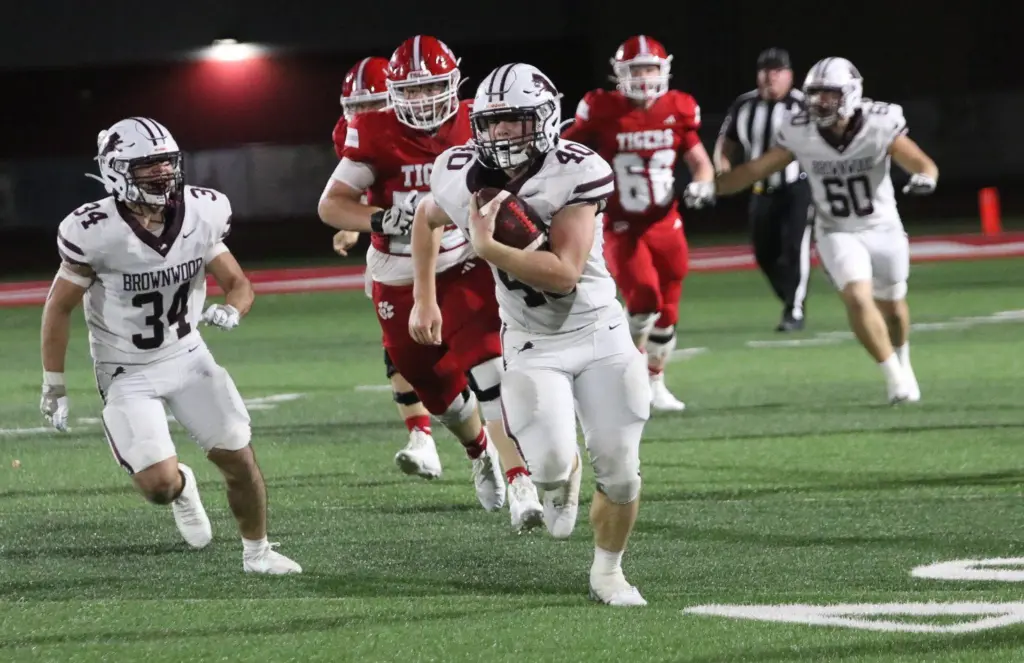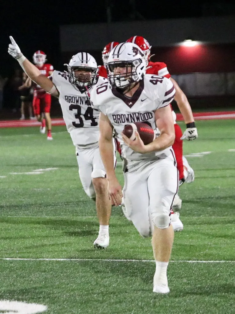 Along with Buffington’s game-changing sprint, Coalson added a first-half 38-yard scramble and Pearson picked up 11 yards on a second-half carry. Brownwood’s other 34 rushes during the game netted a total of 43 yards.