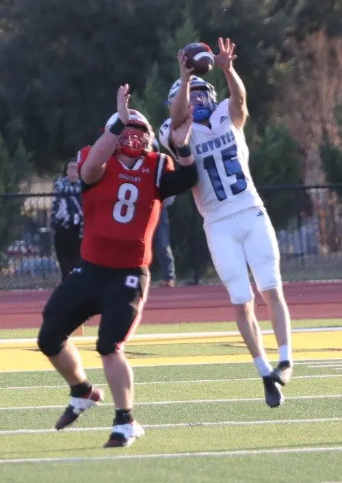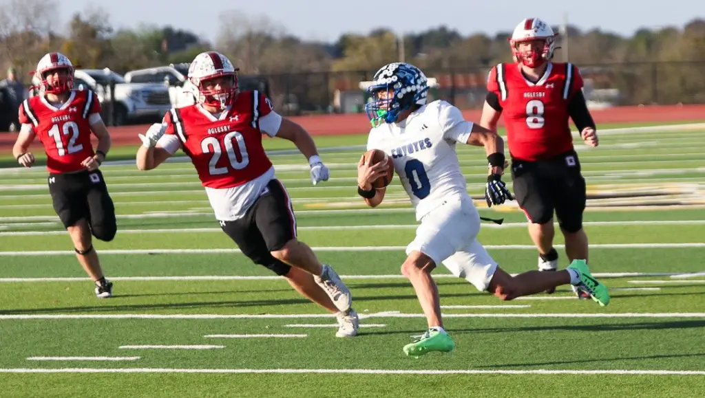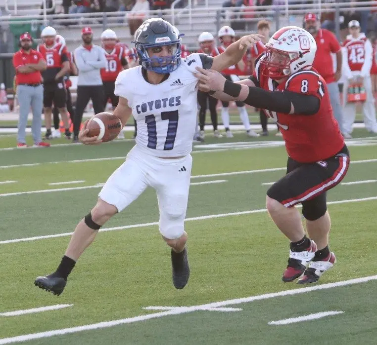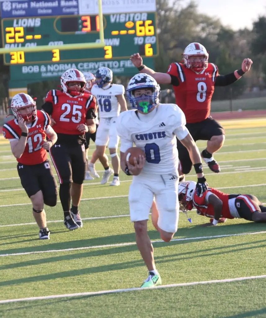 The Coyote defense limited Oglesby to 217 yards of total offense – 109 passing and 108 rushing – with five total stops, including a pair of interceptions by Evan Deeds.
