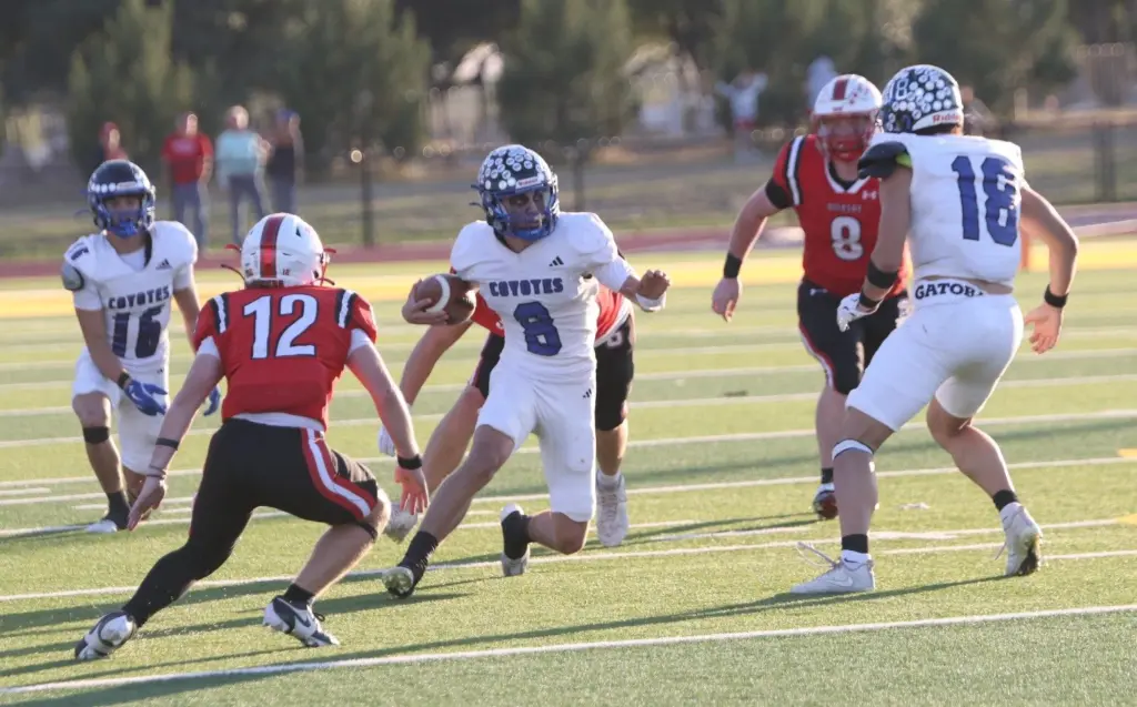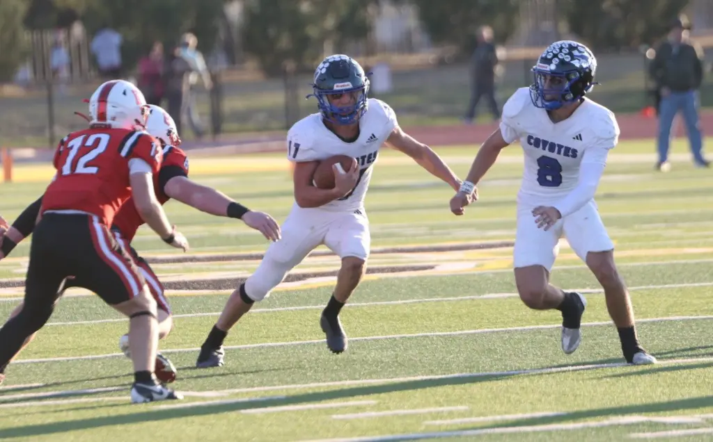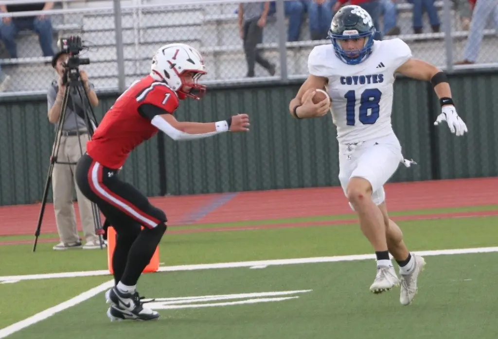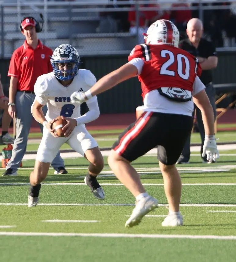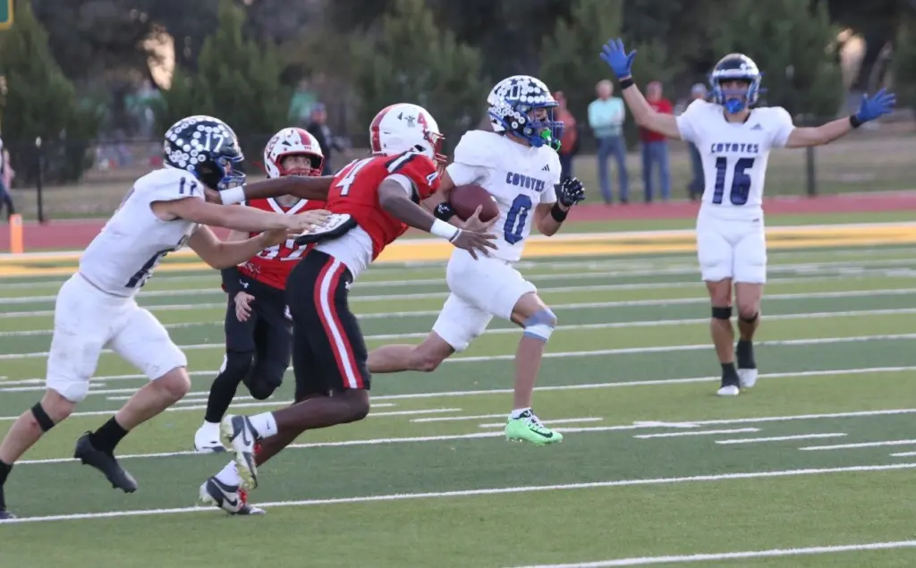 The Coyotes fell behind early, 8-0, on a 4-yard touchdown pass from Goff to Evan Williamson, while Richland Springs crept within 8-6 on a 37-yard toss from Ethridge to Ethan Deeds on its first play from scrimmage.
