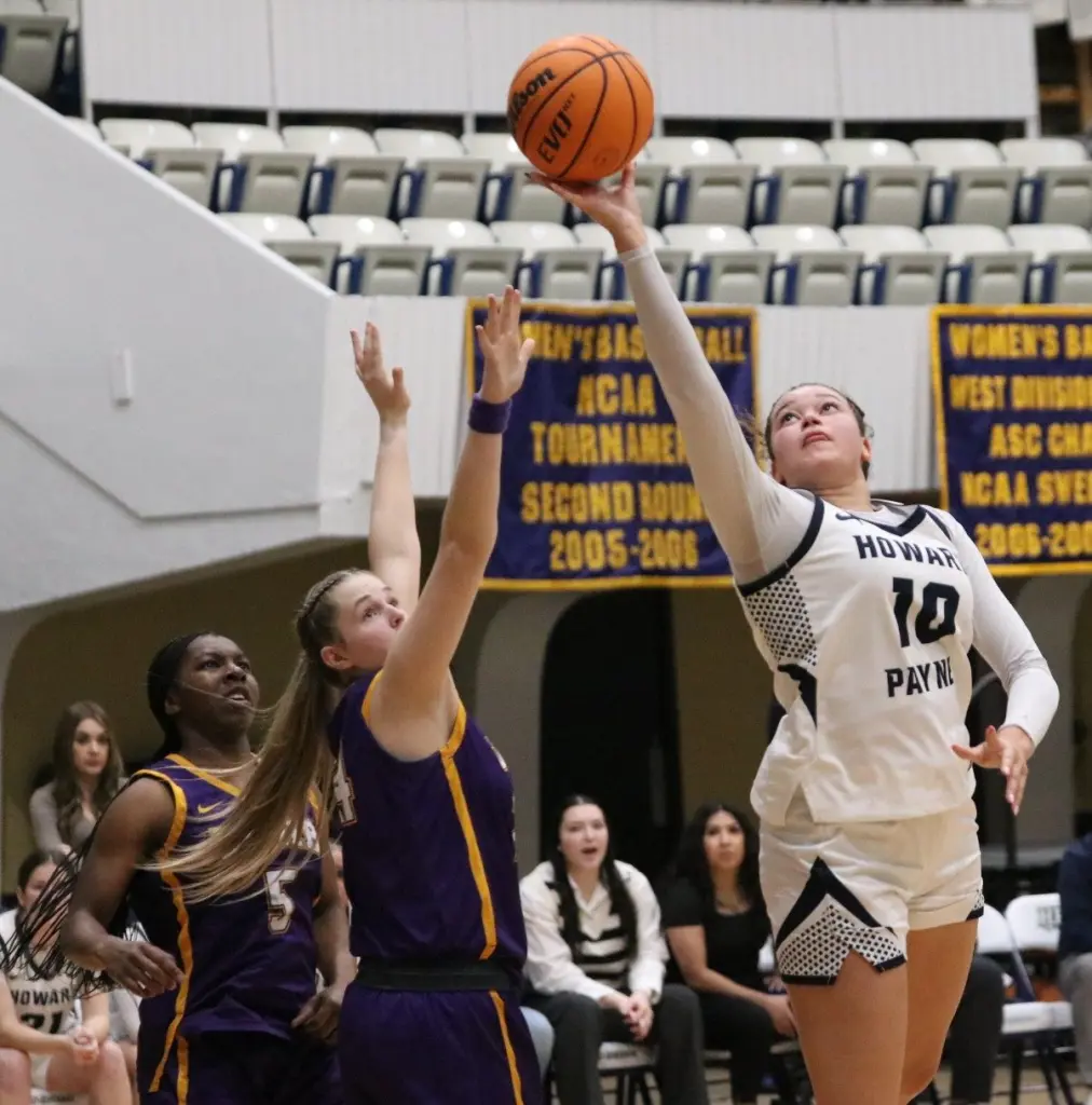 Howard Payne (10-10, 1-0) surged ahead 57-53 with 5:17 left following a jumper by Hope Hermesmeyer, but the Lady Jackets did not score again until Ambriz’s heroics in the closing seconds, falling victim to a 6-0 run.