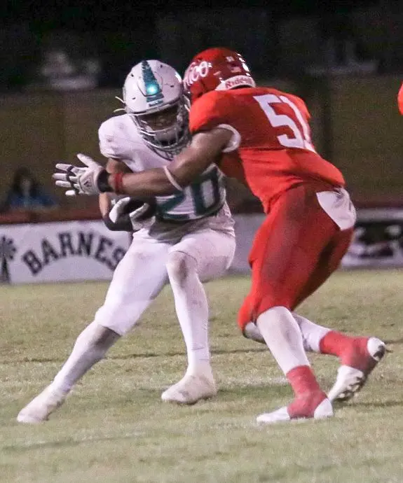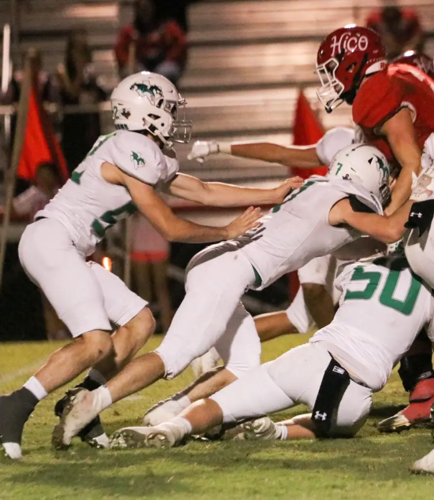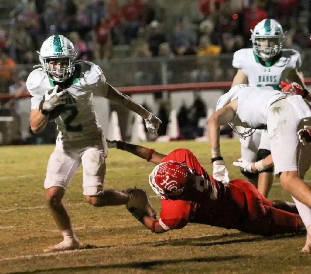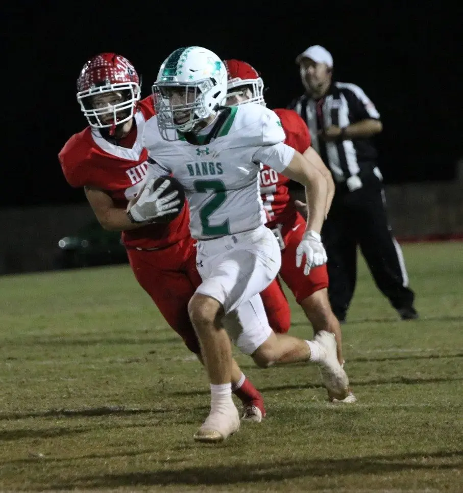Behind the blocking of Damian Hudsepth, Kian Kelly, Roy Duron, Jace Duncan, and Caleb Wagner, Bangs finished with 283 yards of total offense, with 260 coming on the ground, compared to 328 yards for Hico – 181 rushing and 147 passing – and neither team committed a turnover.